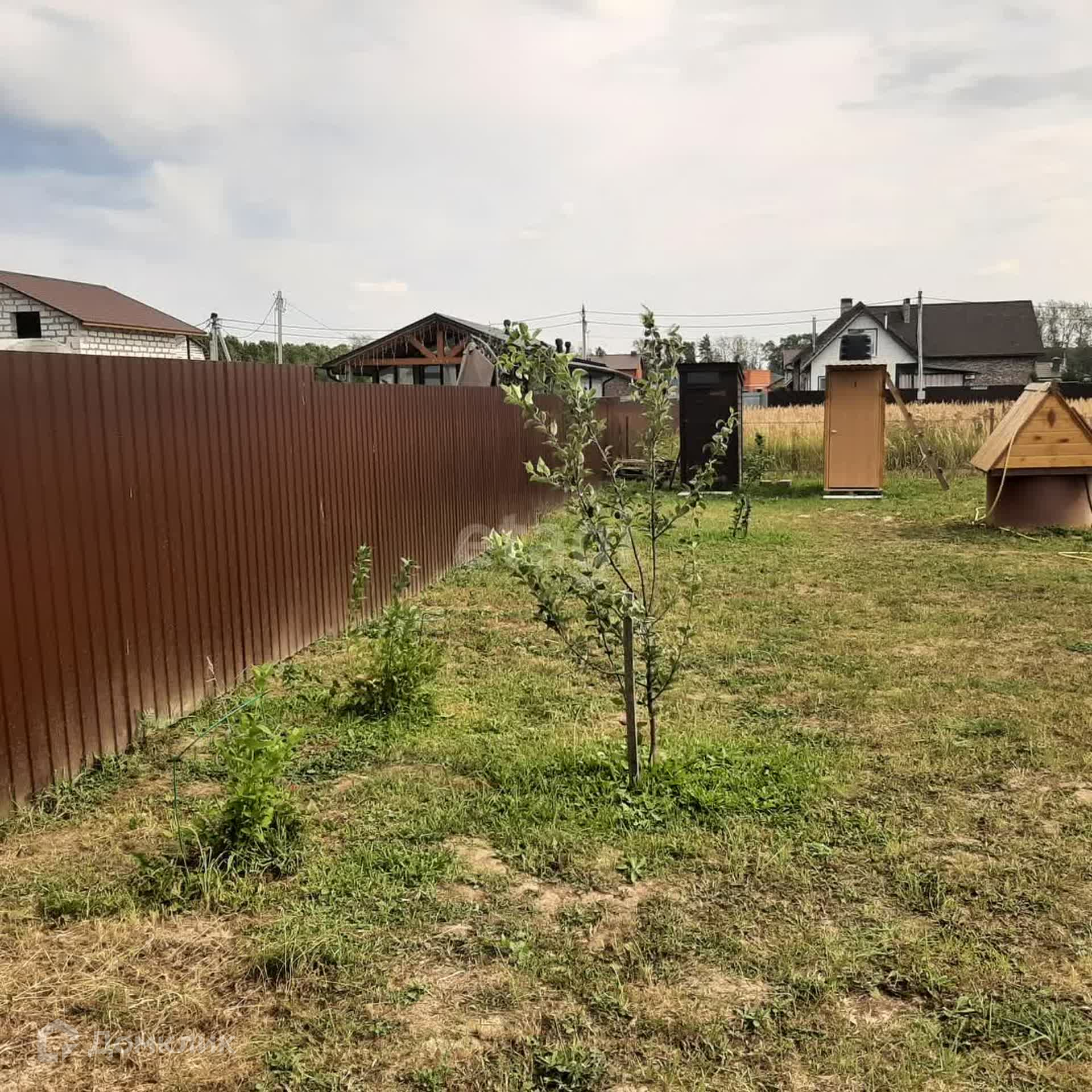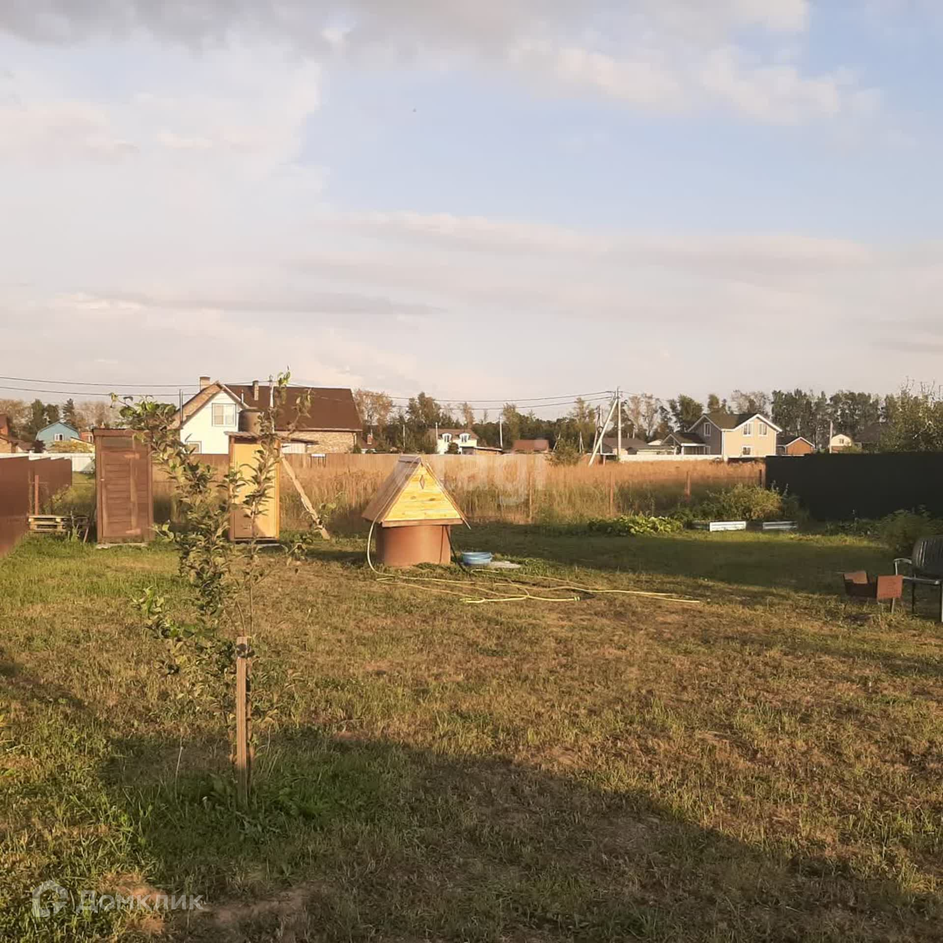 Участок огорожен сеткой рабицей, есть колодец, по границе деревни проходит газ.