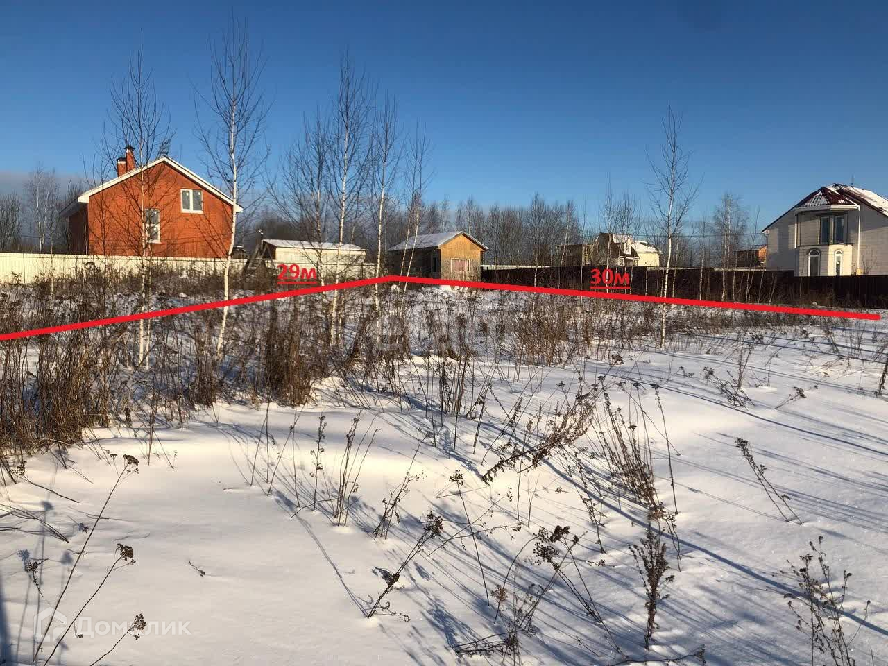 - Вдоль участка возведены столбы для забора.
