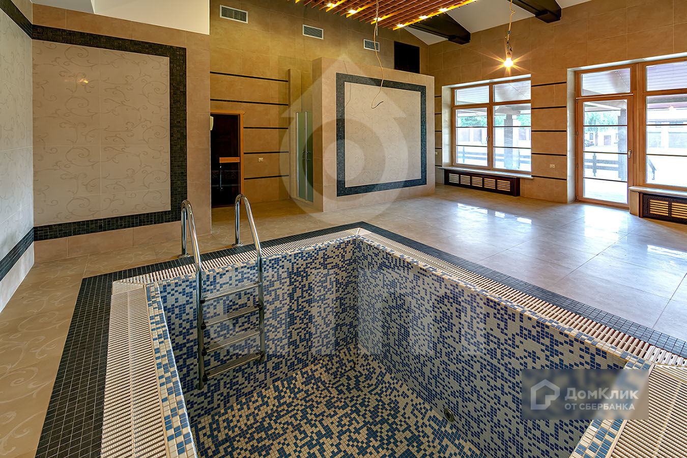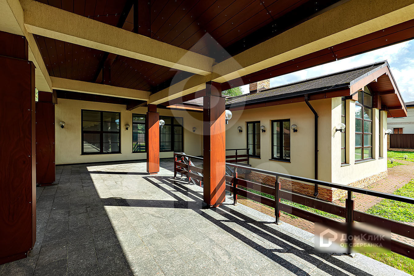 Вдоль основного дома открытая галерея с переходом в дополнительный дом и открытая зона барбекю. В дополнительном доме располагается, каминный зал, спортивный зал, сауна, хамам с отдельными душевыми, купель. Комната отдыха, два с/у, гардеробные, кладовые помещения. Имеется дополнительный хоз. блок для хранения инвентаря и крупногабаритной садовой техники.