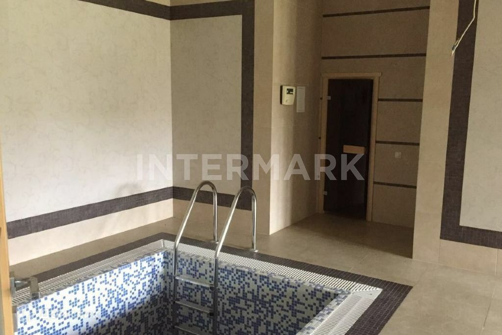 Лот 4676. Лучшее предложение в поселке! Предлагаем купить дом в поселке Борки. Поселок расположен на Рублево-Успенском шоссе в 20 км от МКАД. Площадь дома 1450 кв.м. В доме выполнена отделка под ключ. Планировкой предусмотрено 2 этажа, 2 уровня, 5 спален. Планировка дома: 1 уровень - гардеробные, каминный зал, столовая с камином, профессиональная и бытовая кухни, гостиная, комната отдыха, кладовые, спортивный зал, сауна, хамам, душевые, купель, с/у; 2 уровень - холл, библиотека, 5 спален, каждая с с/у, гардеробными, блок из двух смежных комнат с с/у, ванной комнатой, гардеробной. Дом расположен на участке общей площадью 47 соток. Помимо основного дома на участке расположены: зона для барбекю, дом для персонала, 1 этаж: гараж на 4 м/м, комната охраны, котельная, 2 этаж: 4 комнаты для персонала с /у, кухня, постирочная, душевая. В доме есть комфортная SPA-зона с сауной. В КП Борки современные инженерные коммуникации: газоснабжение - магистральное, выделенная мощность электричества 100 Квт, водоснабжение - скважина, канализация - центральная.