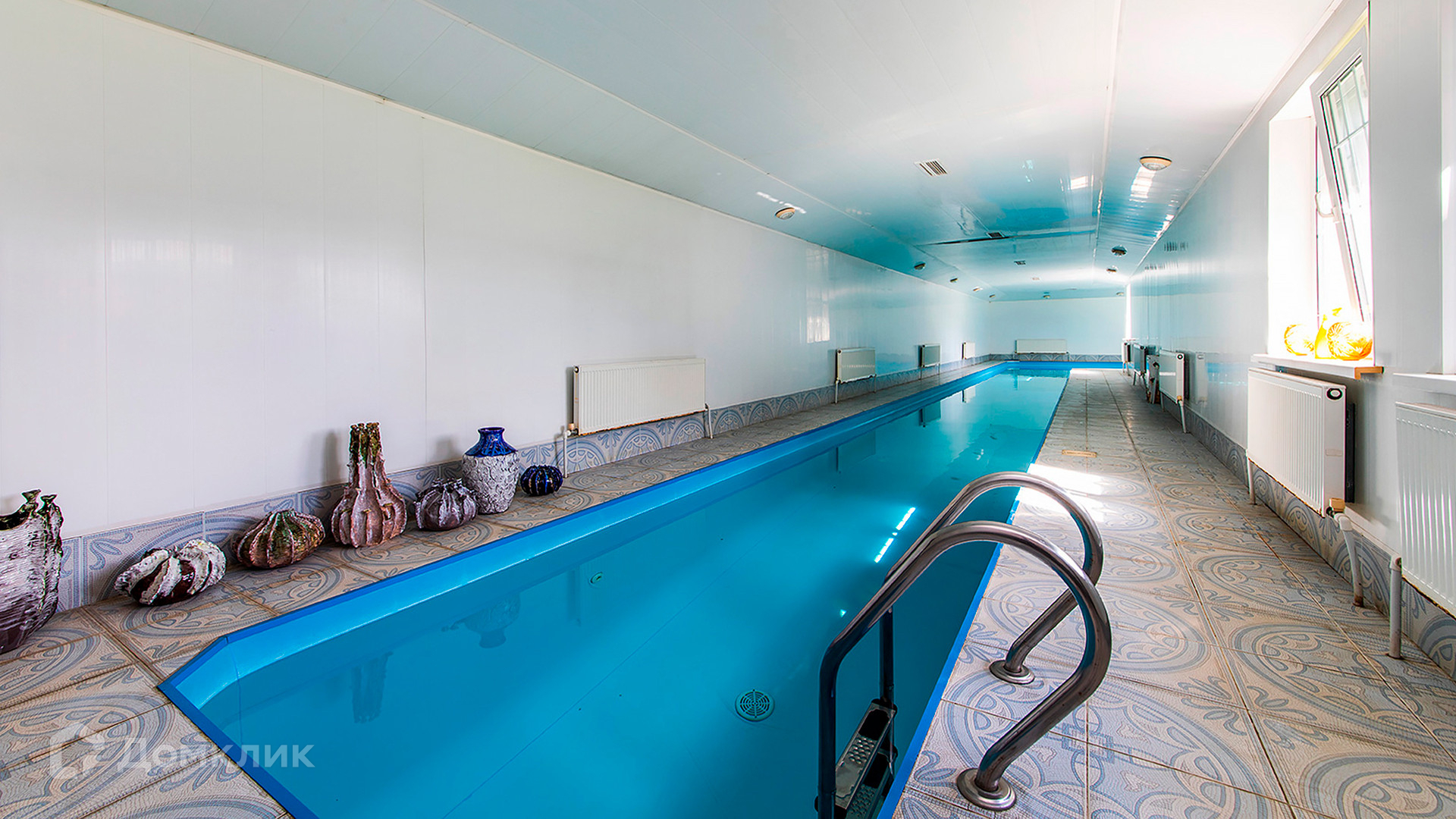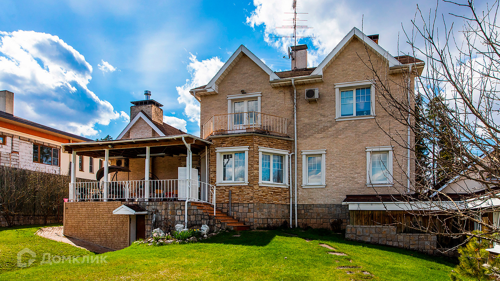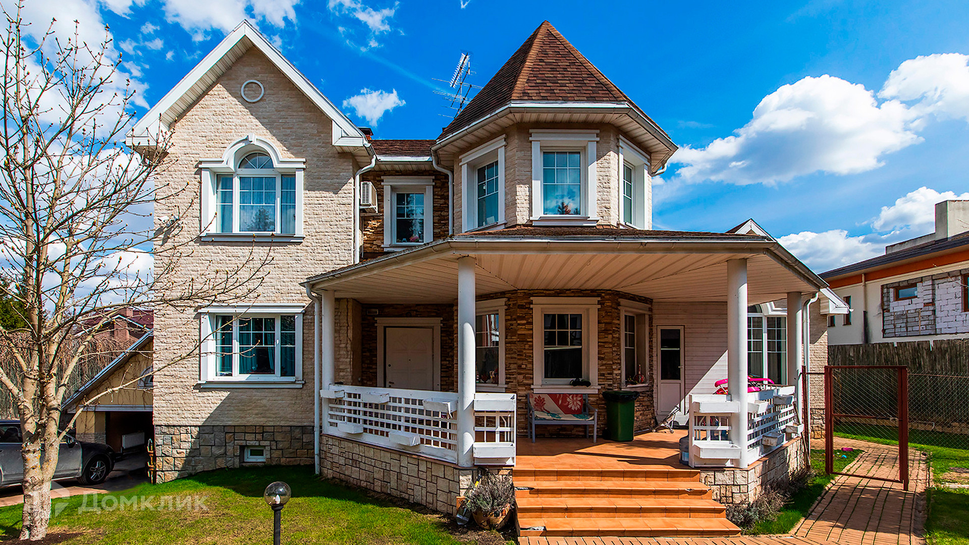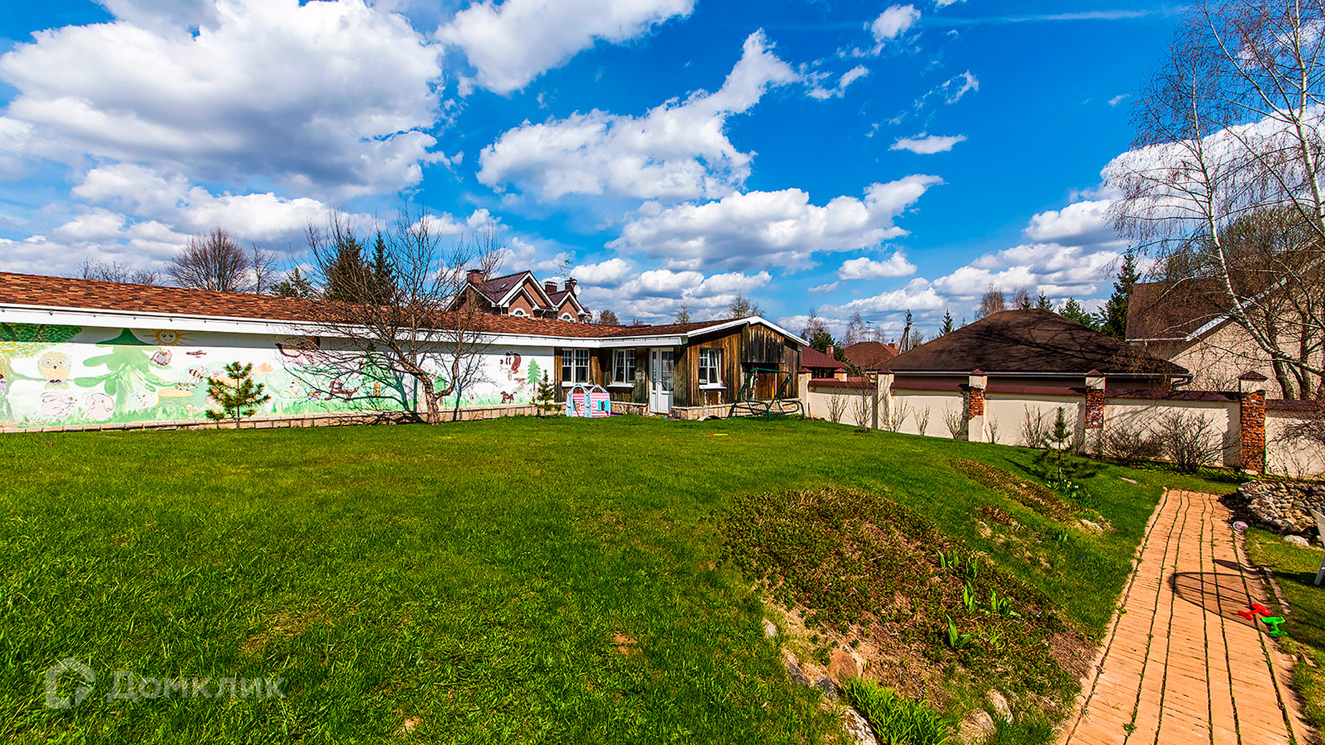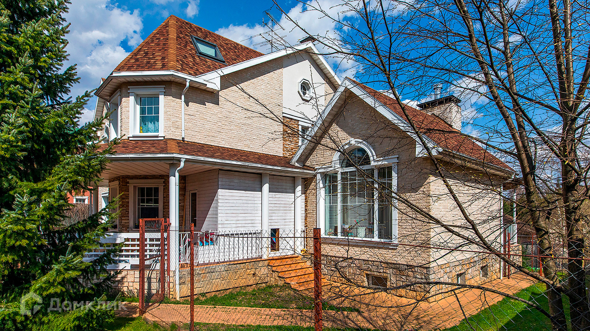 ID 10 330. Новорижский (Борки-3). Загородный дом площадью 650 м² расположен на участке 15 соток с рельефом. Фасад в европейском стиле облицован бежевой клинкерной плиткой разных оттенков. Интерьер наполнен красками и яркими акцентами. Коттедж полностью меблирован, установлена бытовая техника. Внутри спланировали 8 спален, гостиную с камином, кухню с барной стойкой, кабинет, винную комнату, бассейн длиной 25 метров, сауну и гараж на 2 машины. На участке выполнен ландшафтный дизайн, обустроен пруд, высажены декоративные и плодовые деревья, кустарники.