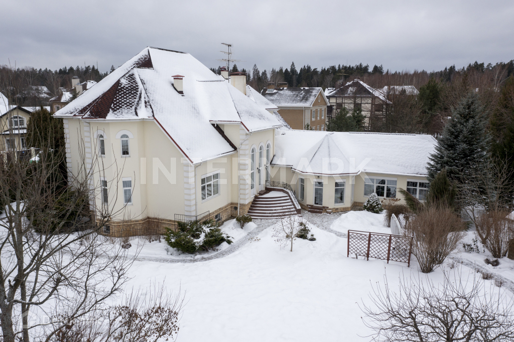 Лот 7322. Новорижский Борки. Лучшее предложение в поселке! Предлагаем купить дом в коттеджном поселке Новорижский Борки. КП расположен на Новорижском шоссе в 30 км от МКАД. Площадь дома 677 кв.м. В доме выполнена отделка под ключ. Планировкой предусмотрено 2 этажа, 3 уровня, 9 спален. Планировка дома: цоколь - 2 спальни, с/у, зона отдыха и бильярдная, постирочная, бойлерная, подсобные помещения; 1 уровень - 3 спальни, кабинет, 2 с/у, холл, гардеробная, гостиная, столовая, кухня. зона с спа с бассейном, сауной и с/у; 2 уровень - 4 спальни, с/у, гардеробная, мастер-спальня с гардеробной и своим с/у. Дом расположен на участке общей площадью 30 соток. Помимо основного дома на участке расположены: беседка для барбекю, бассейн, дом для обслуживающего персонала, игровая площадка. В доме есть комфортная SPA-зона с бассейном и сауной. В КП Новорижский Борки современные инженерные коммуникации: газоснабжение - магистральное, подведено электричество, водоснабжение - централизованное, канализация - центральная. Проведены телекоммуникации: интернет, спутниковое tv. В коттеджном поселке круглосуточная охрана. Год постройки 2004