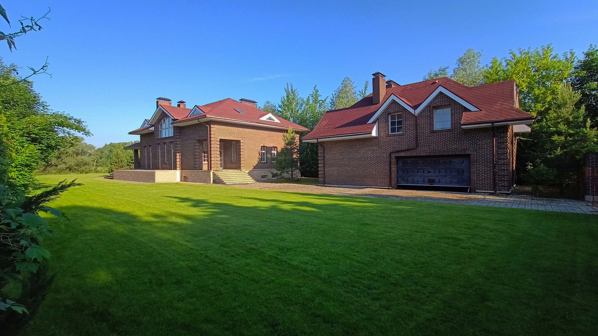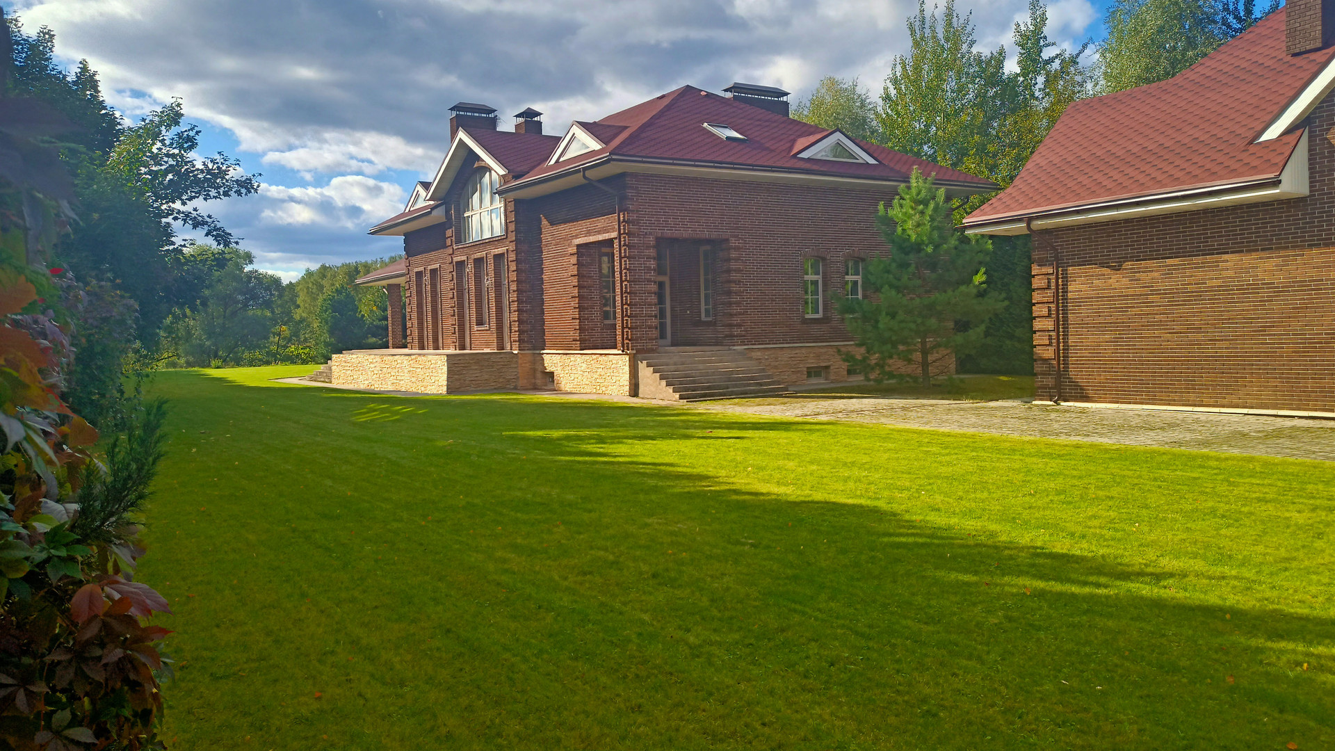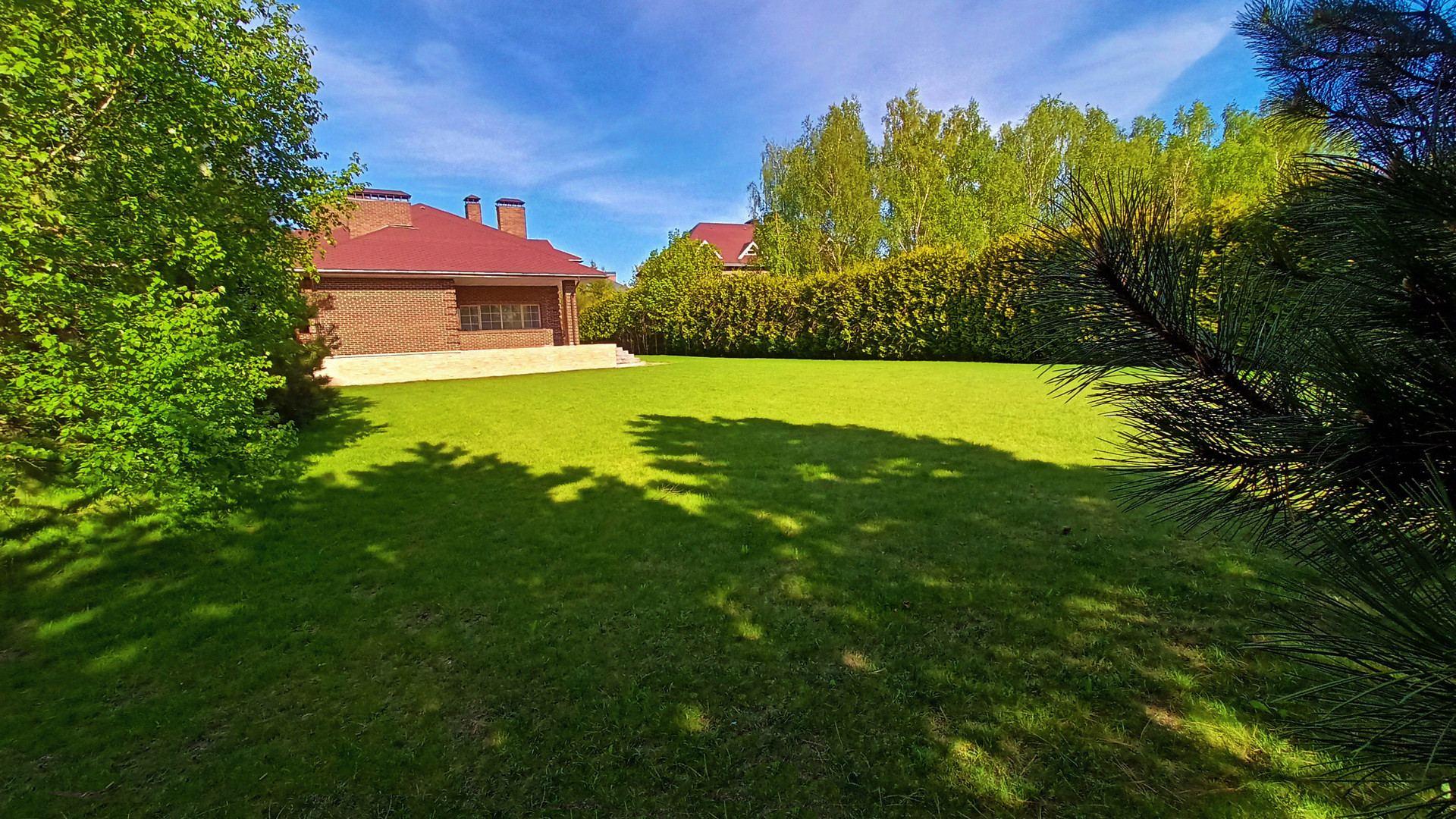 Классический экстерьер дома и газон - прекрасная и лучшая основа для воплощения своей мечты о загородной жизни, без навязывания чужого вкуса в уже заданном ландшафте и б/у доме с чужой б/у обстановкой, и позволяет без проблем создать именно свой, любимый интерьер - от классического до хай-тека.