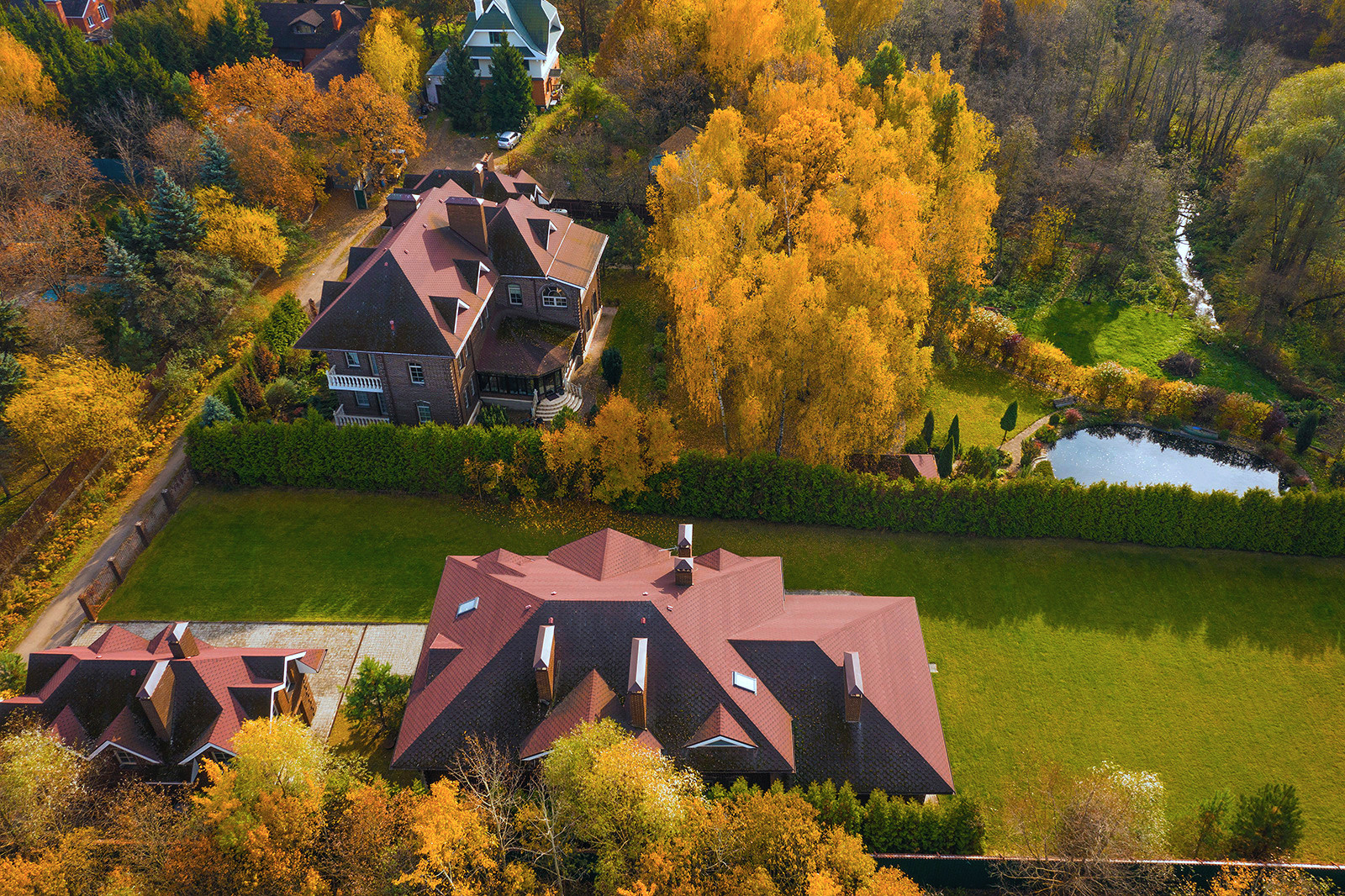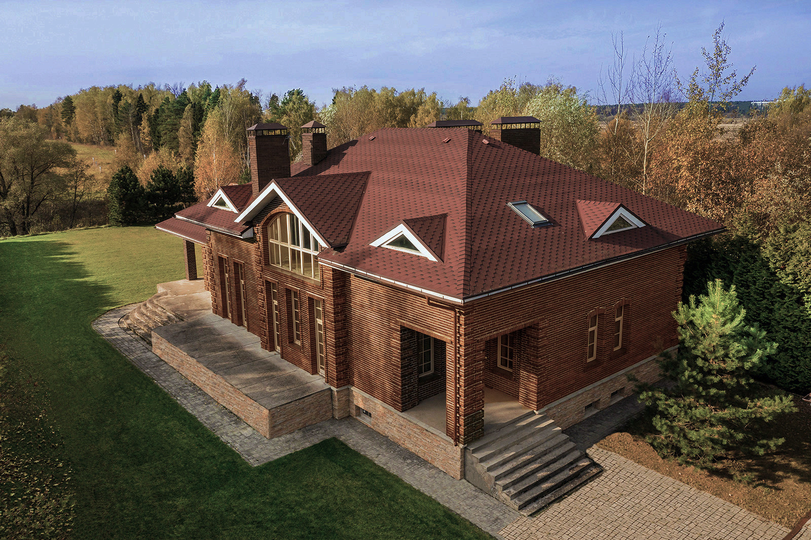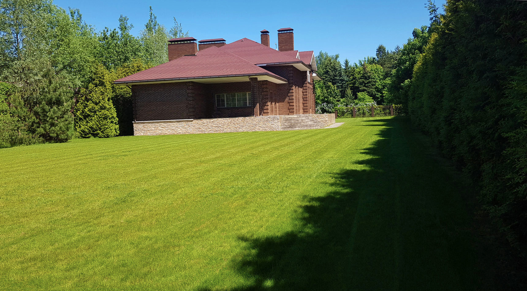 Классический экстерьер дома и газон - прекрасная и лучшая основа для воплощения своей мечты о загородной жизни, без навязывания чужого вкуса в уже заданном ландшафте и б/у доме с чужой б/у обстановкой, и позволяет без проблем создать именно свой, любимый интерьер - от классического до хай-тека.