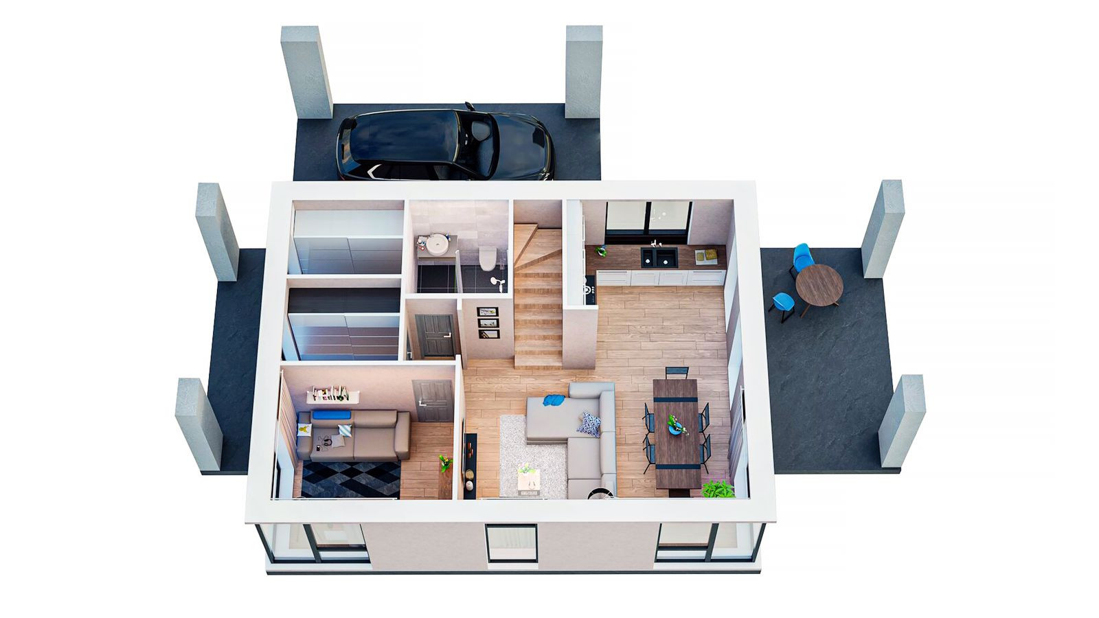 Открытая терраса (13,1 кв.м) , идеально подойдет для встреч с друзьями и ужинов на свежем воздухе в кругу семьи. Если ваши гости решат остаться на ночь, то четыре спальни (9,5 кв.м,11,9 кв.м, 16 кв.м, 9,9 кв.м) позволят сделать размещение максимально комфортным как для гостей, так и для хозяев дома. Два санузла (6,5 кв.м,4,3 кв.м) .Навес для парковки автомобиля ( 22,2 кв.м ).
