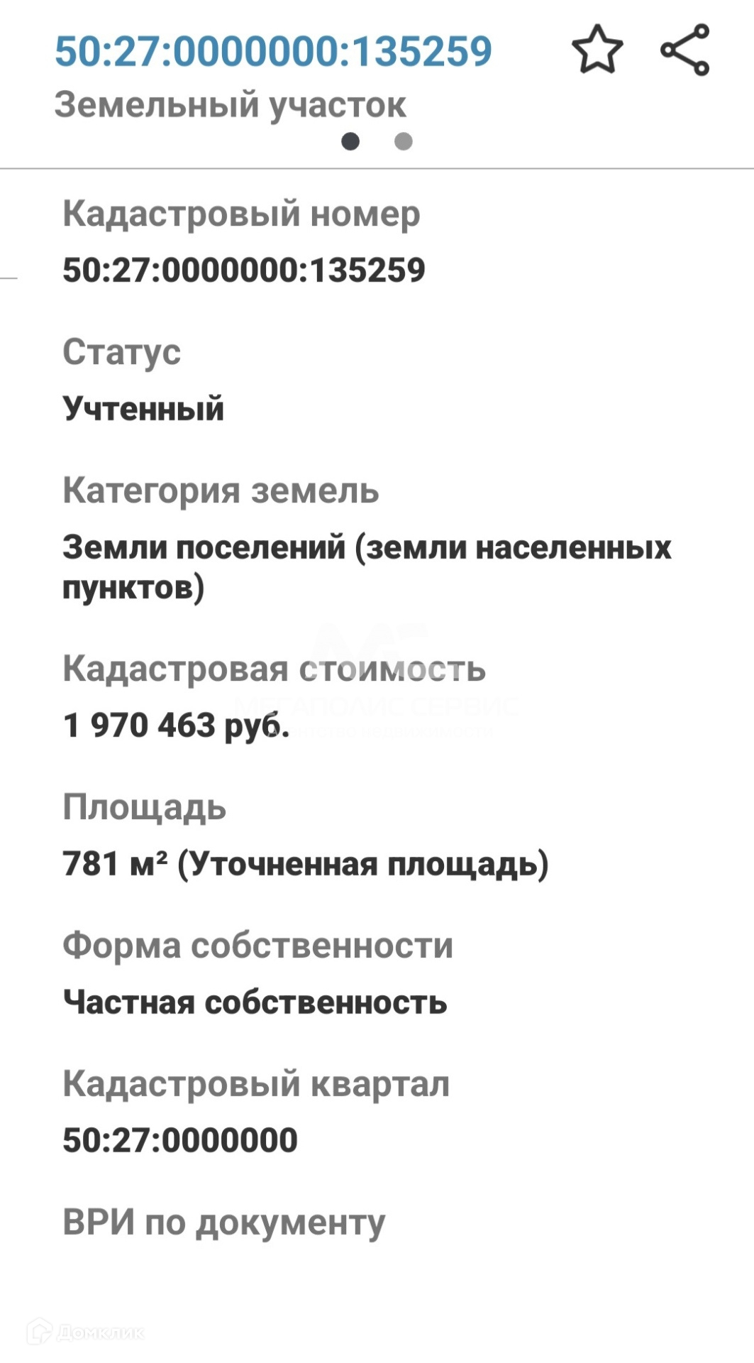 Стоимость недвижимости: