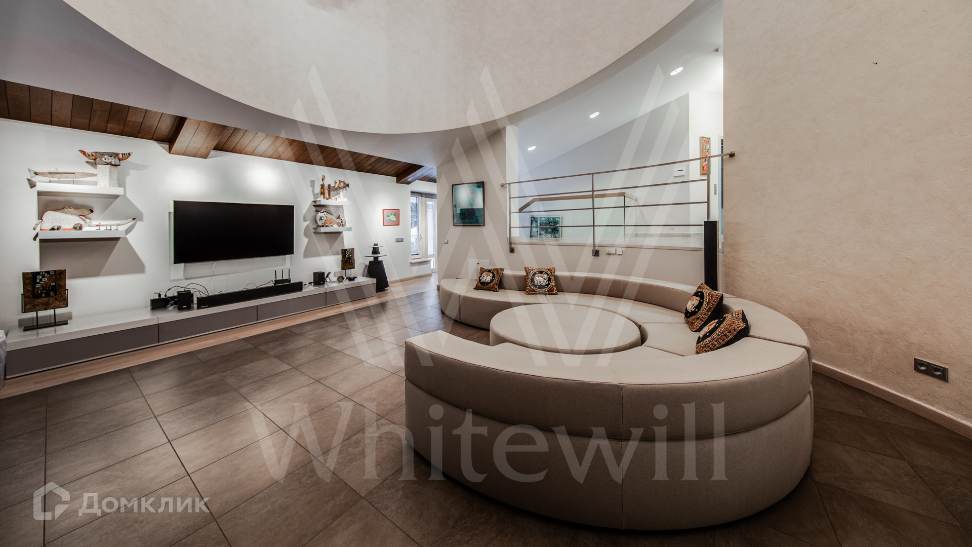 3-й уровень: гостиная с домашним кинотеатром и бильярдом, 2 комнаты, терраса, санузел.