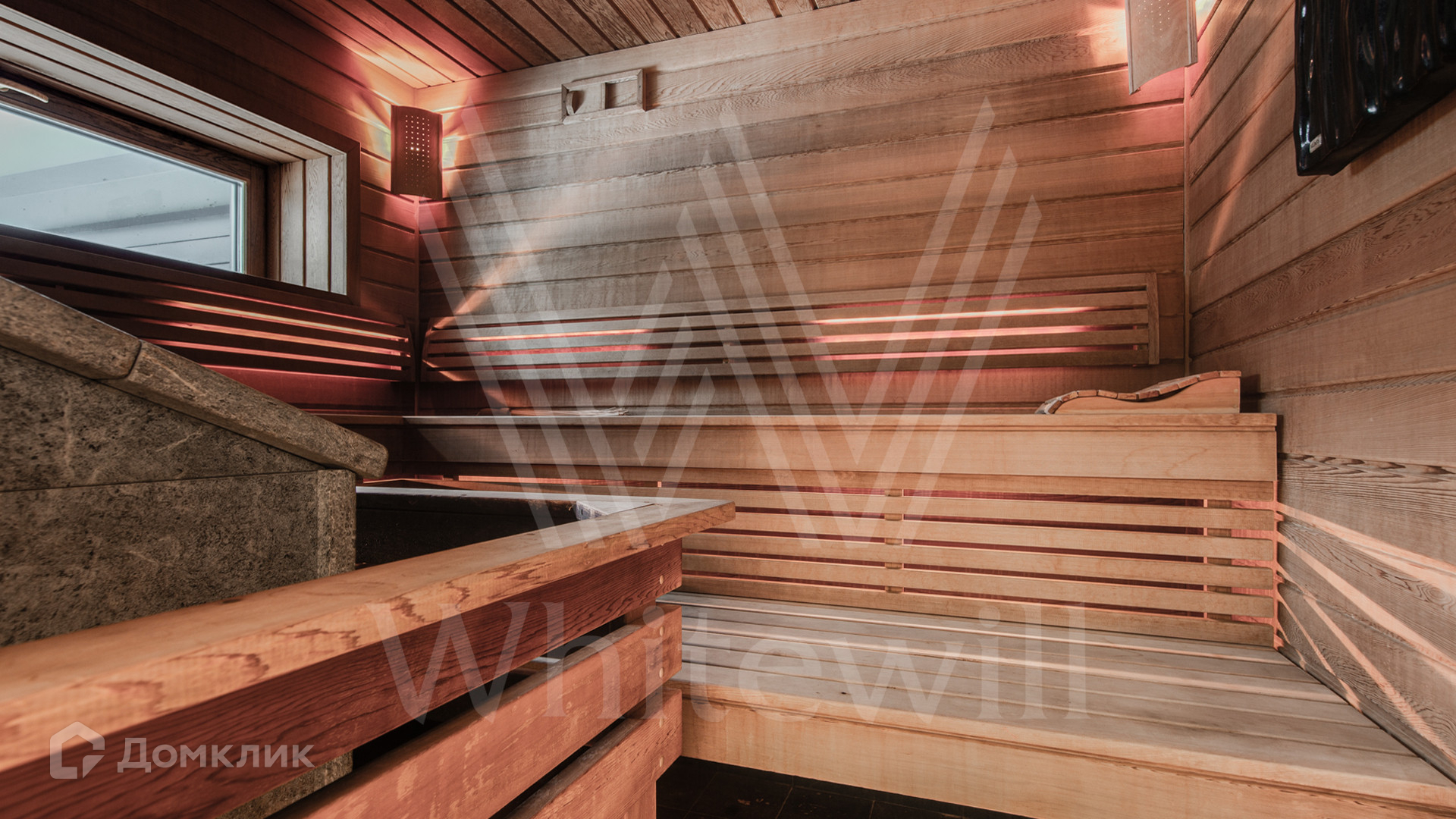 1-й уровень: прихожая, гардеробная, санузел, холл, гостиная с камином и вторым светом, кухня-столовая, кабинет, тренажерный зал, сауна, хаммам, кладовая комната, серверная, постирочная.