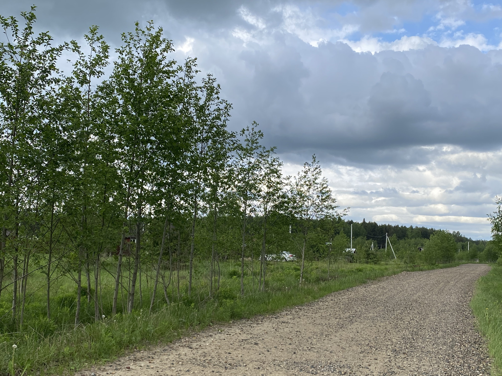 Участок ровный, третий от въезда в д.Боровая, на ул.Уютной.  Поселок активно застраивается.