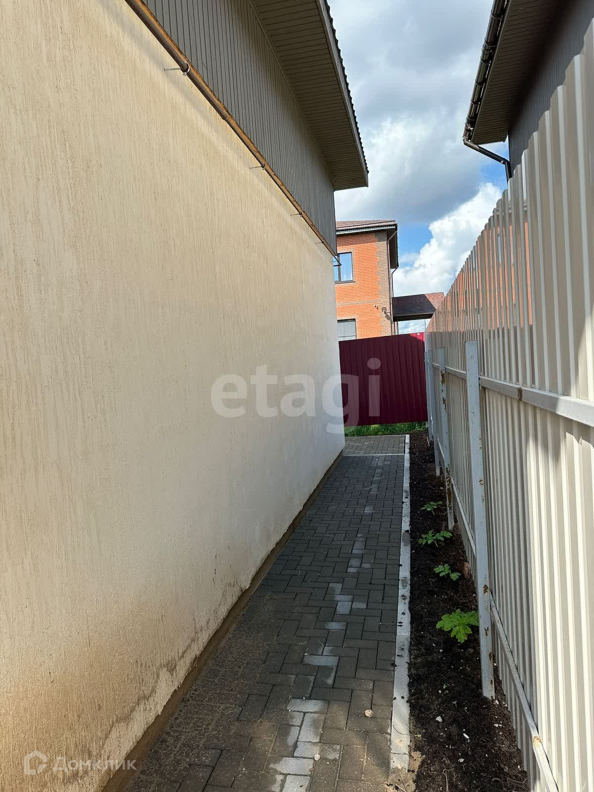На участке, выложена брусчатка , по всему периметру