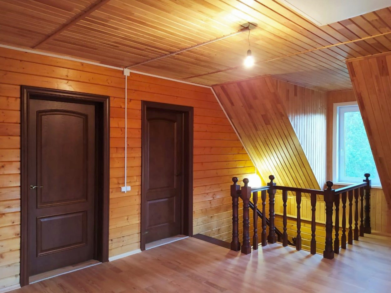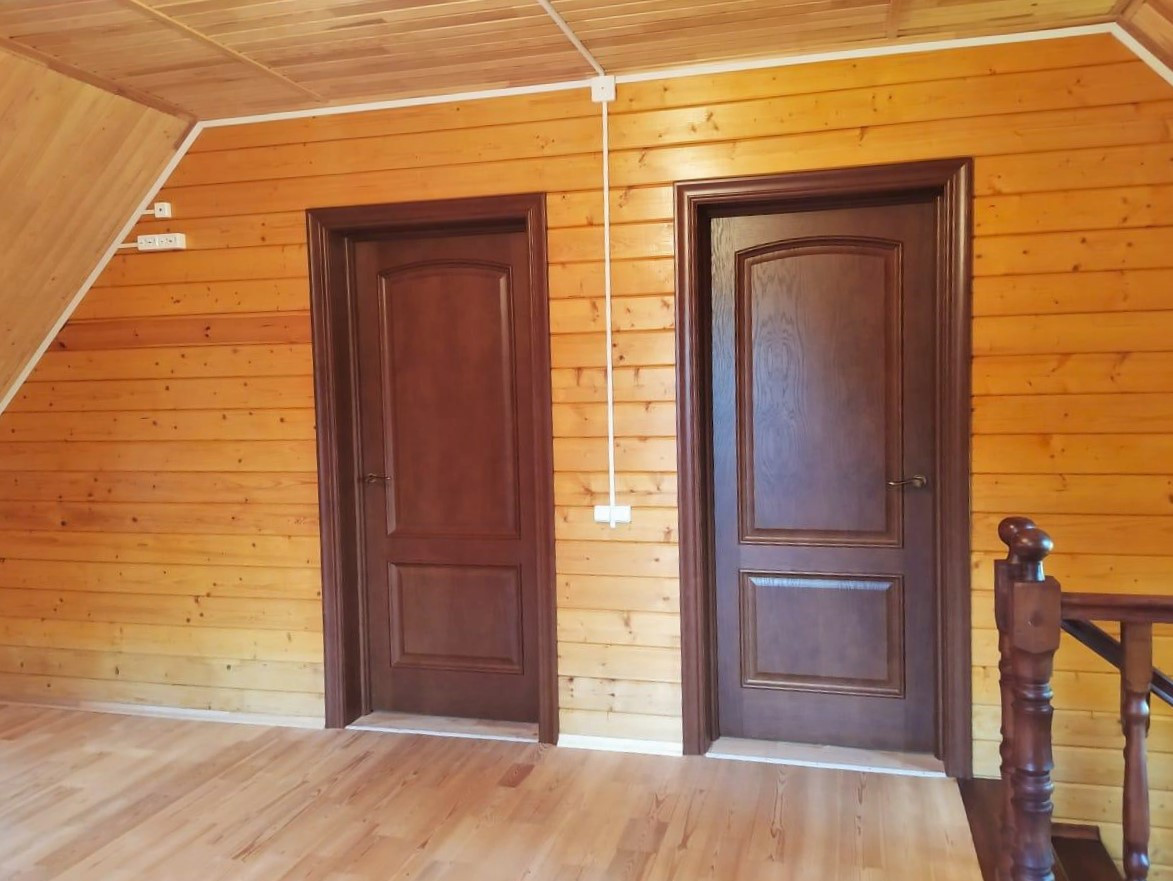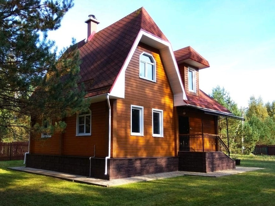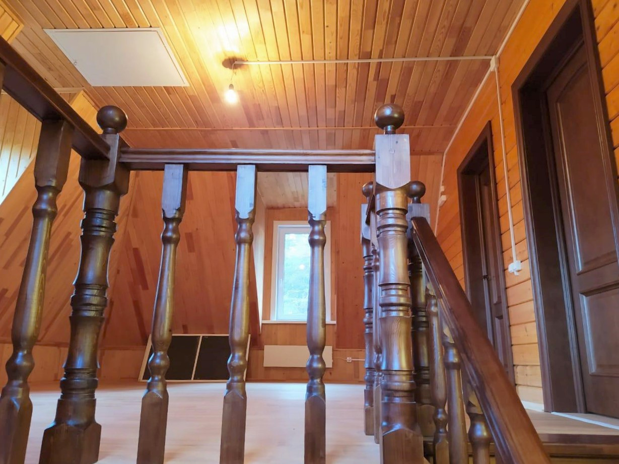 Двухэтажный жилом дом общей площадью 128,2 кв.м возведён на плотном ж/б фундаменте с гидроизоляцией и утеплителями. По периметру дома продумана дренажная система. При строительстве использовались исключительно высококачественные материалы! Стены — клееный брус толщиной 200 мм, пропитанный антисептиком. Крыша выстлана современной мягкой битумной черепицей (практически бесшумна в дождь в отличие от обыкновенной металлочерепицы). Установлены двойные стеклопакеты. Полноценное электроснабжение, обеспечено отопление посредством импортных норвежских конвекторов и настоящего камина. Есть два септика, пробурена своя скважина (глубина 20 м) с заведением всех водных коммуникаций в дом «под ключ».