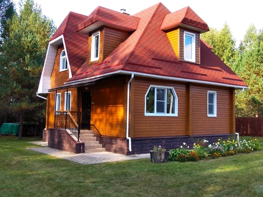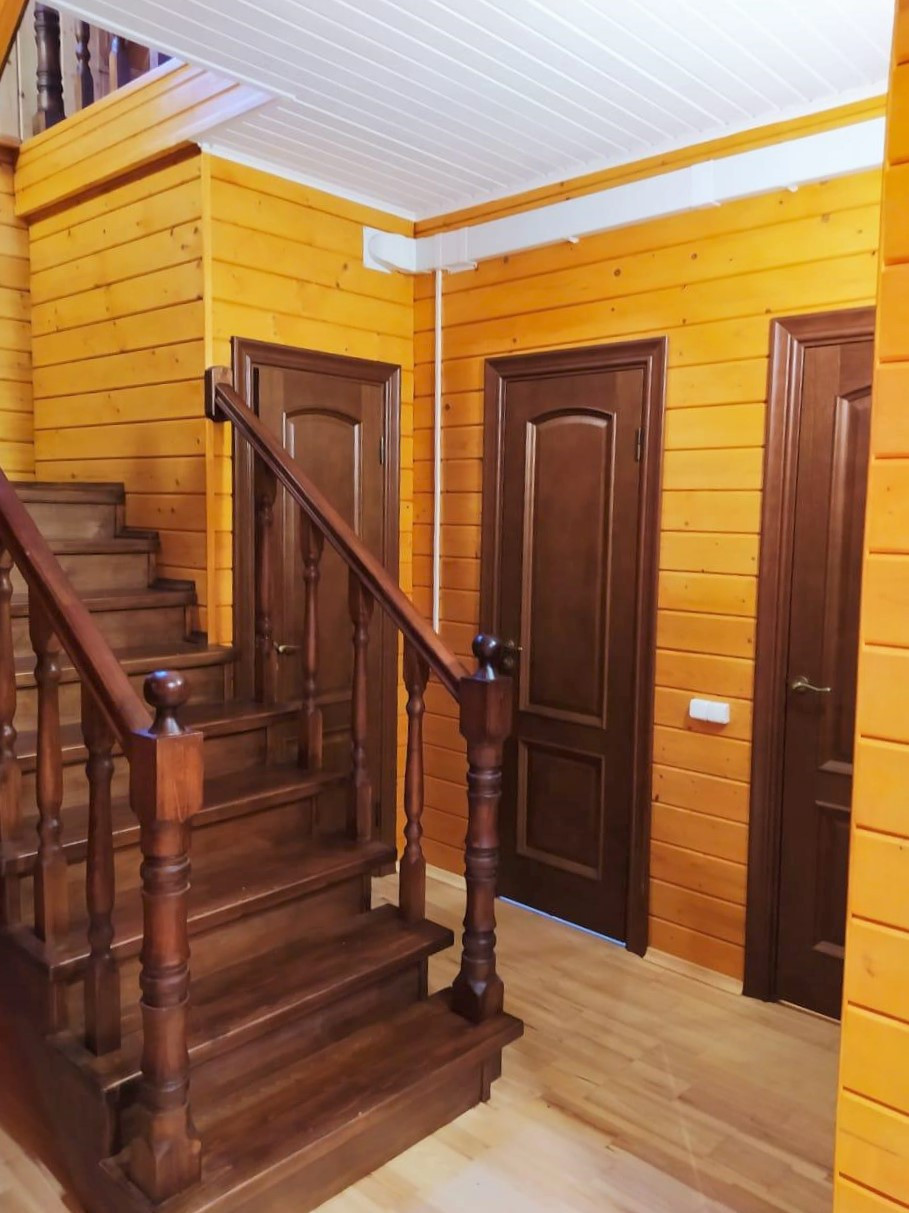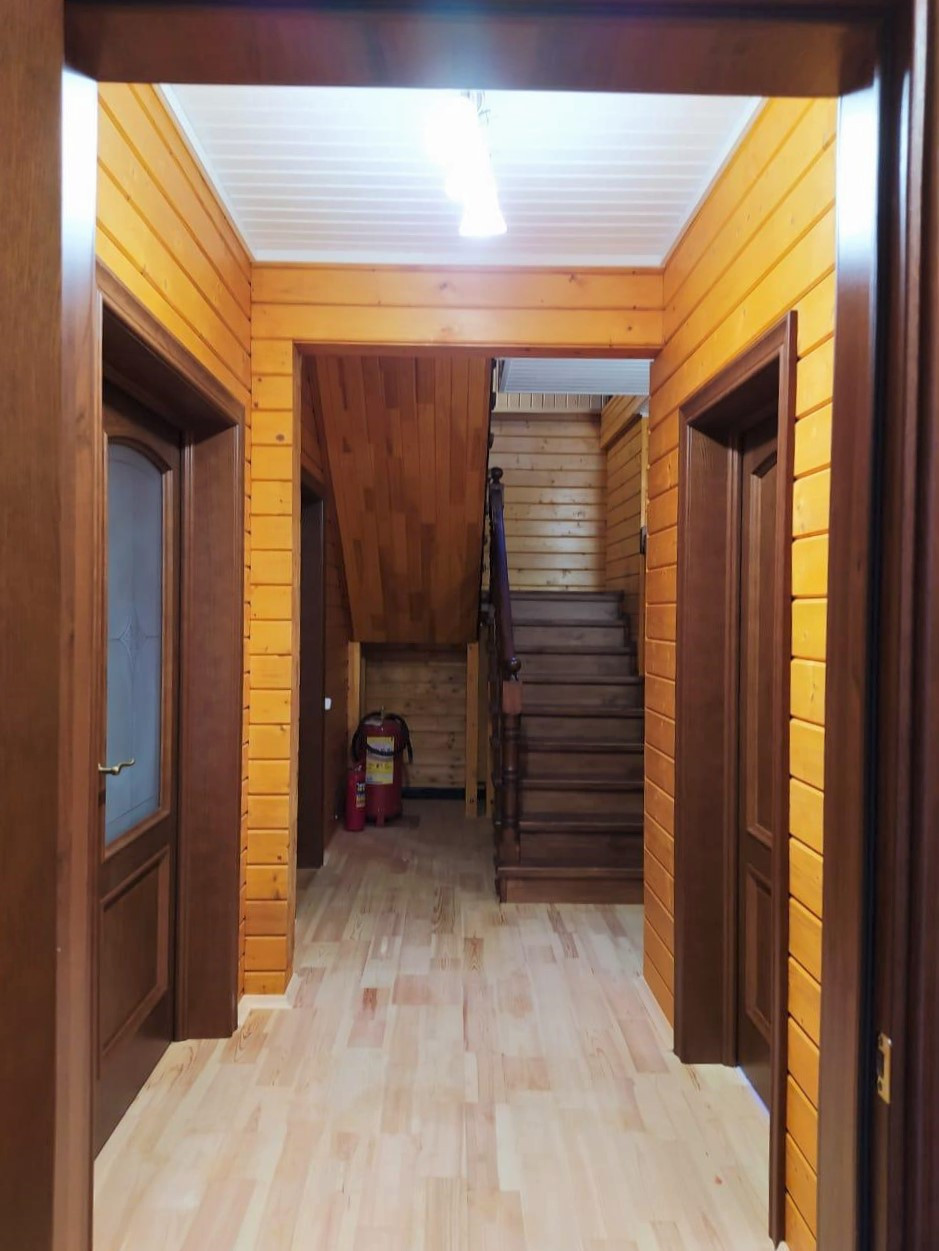Двухэтажный жилом дом общей площадью 128,2 кв.м возведён на плотном ж/б фундаменте с гидроизоляцией и утеплителями. По периметру дома продумана дренажная система. При строительстве использовались исключительно высококачественные материалы! Стены — клееный брус толщиной 200 мм, пропитанный антисептиком. Крыша выстлана современной мягкой битумной черепицей (практически бесшумна в дождь в отличие от обыкновенной металлочерепицы). Установлены двойные стеклопакеты. Полноценное электроснабжение, обеспечено отопление посредством импортных норвежских конвекторов и настоящего камина. Есть два септика, пробурена своя скважина (глубина 20 м) с заведением всех водных коммуникаций в дом «под ключ».