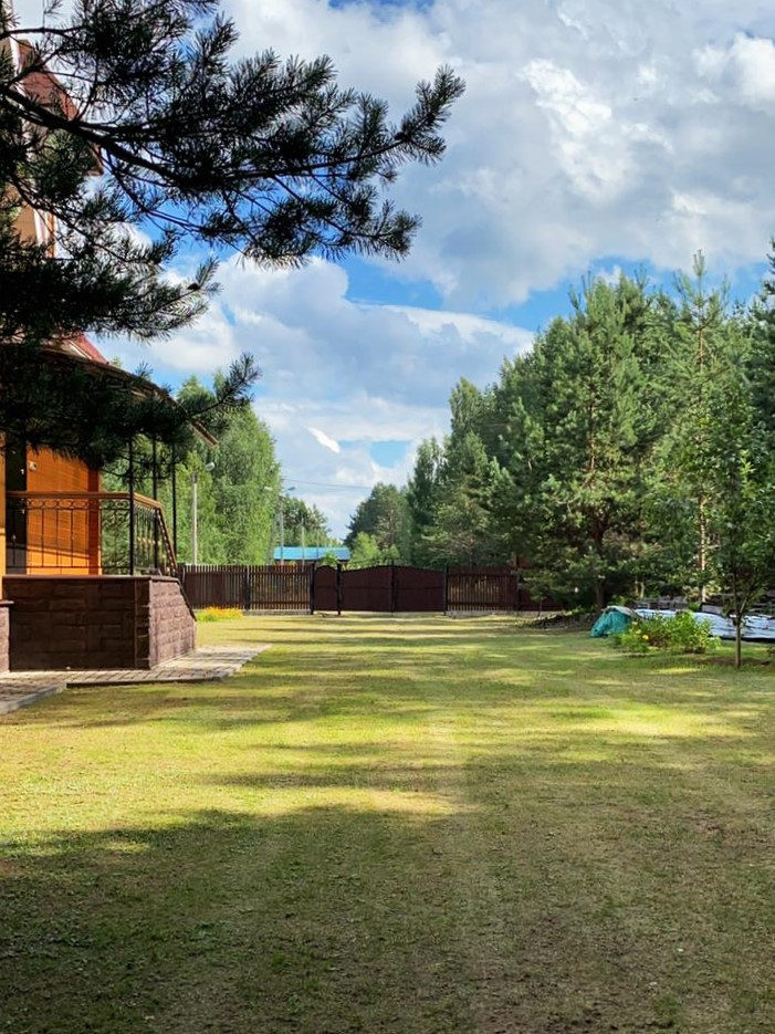 Участок 34 сотки имеет прямоугольную форму. Категория земель: земли населённых пунктов, вид разрешённого использования: для ведения личного подсобного хозяйства. Участок ровный, сухой и разработанный (завезён специальный грунт), обрамлён густым елово-сосновым массивом. По всему периметру возведён надёжный деревянный забор. Выстроены баня (гостевой домик) с парной, помывочной и зоной отдыха, полноценная оборудованная беседка вместимостью до 16 человек, дровяник и беседка-псарня. Имеется собственный понтонный пирс с выходом прямо к воде чистого озера Боровно.