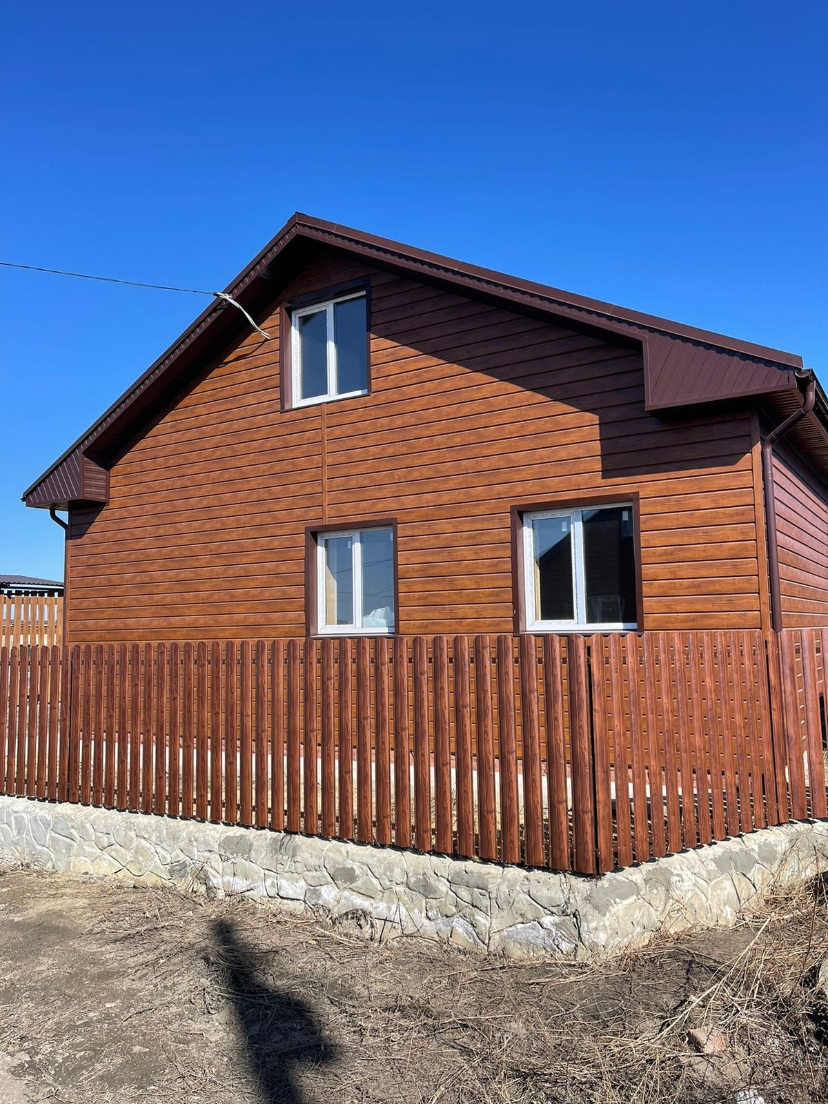 Продам новый дом в Чебаркульском районе деревня Боровое, общей площадью 157 м2, на земельном участке 10,8 соток, огороженный забором. В доме готовая отделка, евро окна, хорошая входная дверь, установлена сигнализация, вода скважина, септик на 6 куб. метров (4 кольца). Материал стен шлакоблок, утеплитель мин вата, обшит метало сайдинг, крыша закрыта метало черепицей. Планировка входная группа, кухня гостиная, санузел, 2 спальни на первом этаже, второй этаж свободной планировки. На участке готовая баня 6*4 (бревно сосна, парилка, мойка, комната отдыха, сан.узел), большая беседка, навес под 2 авто (5х11 м). В деревне школа, садик, магазины, до озера Чебаркуль 5 минут пешком, до города Чебаркуль 10 минут на машине.
