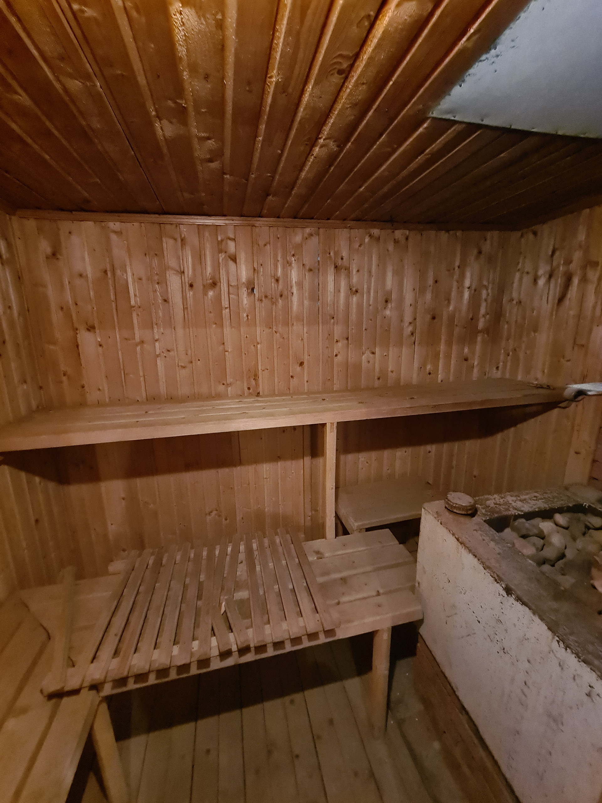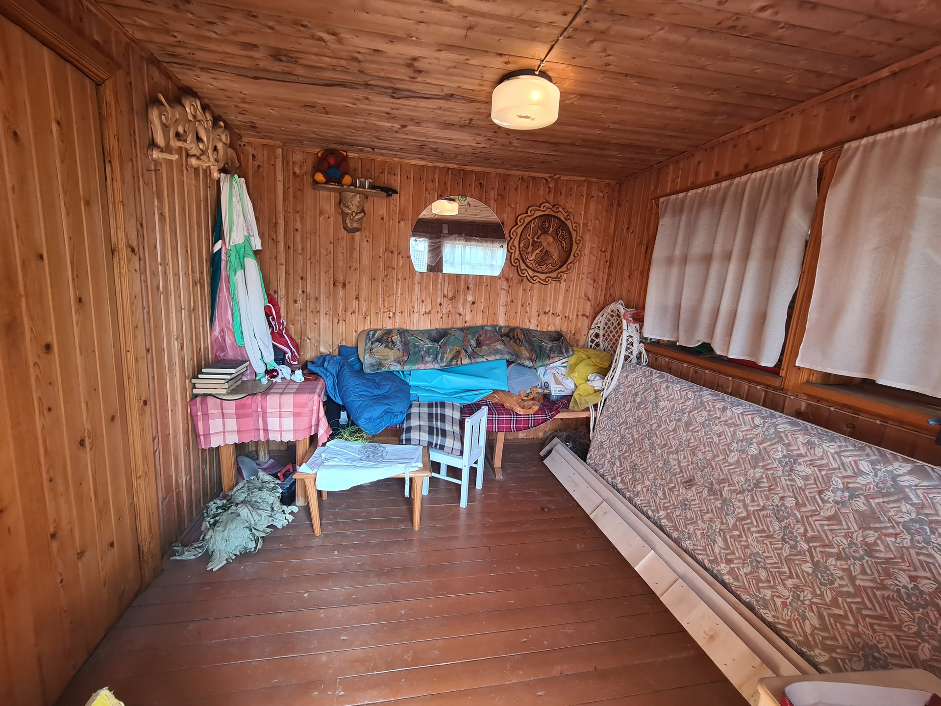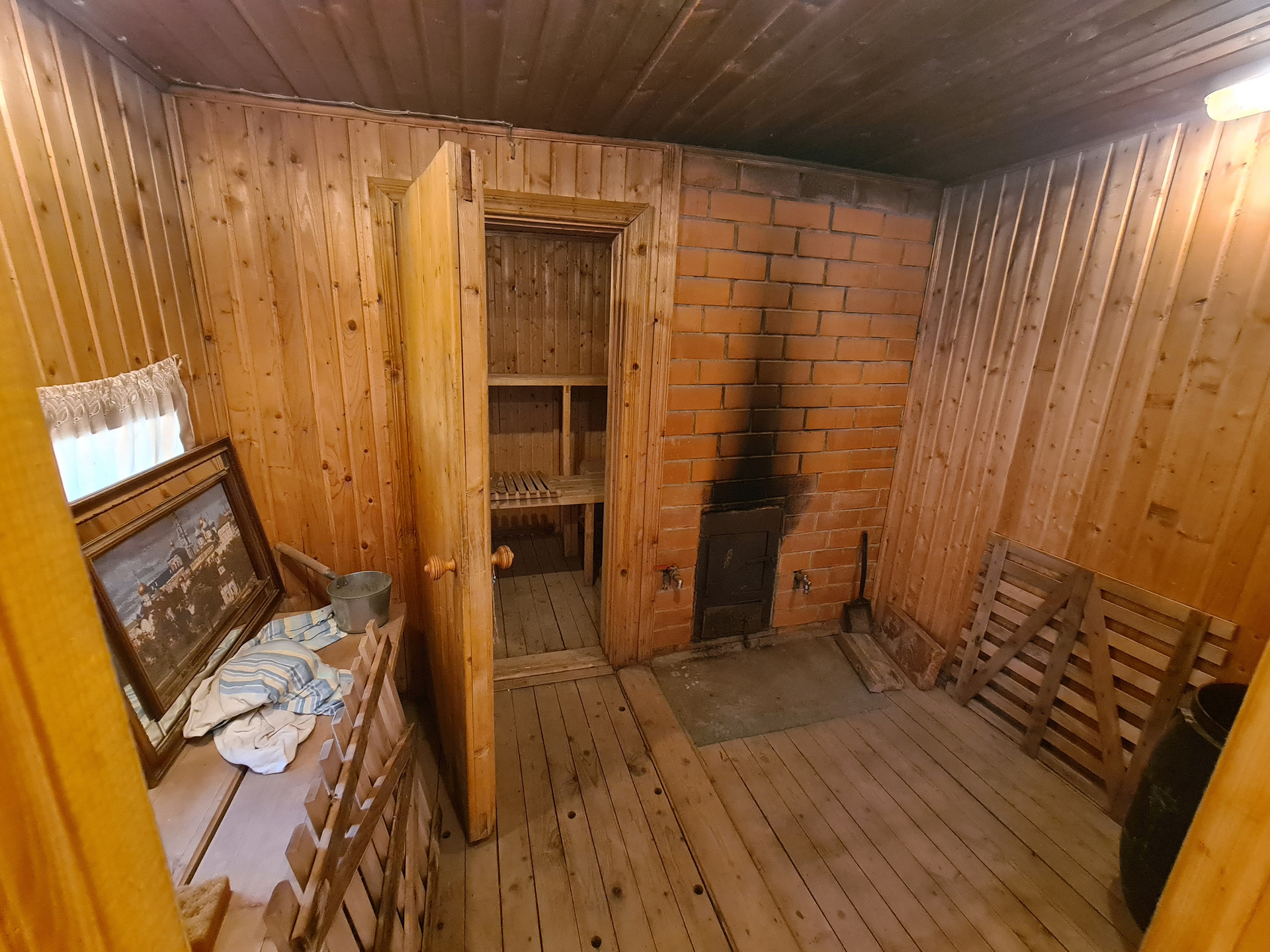 Баня ( бревно) 15 кв.м.: предбанник, топочная и парная, отопление- дровяная печь. Внутренняя отделка -вагонкой.