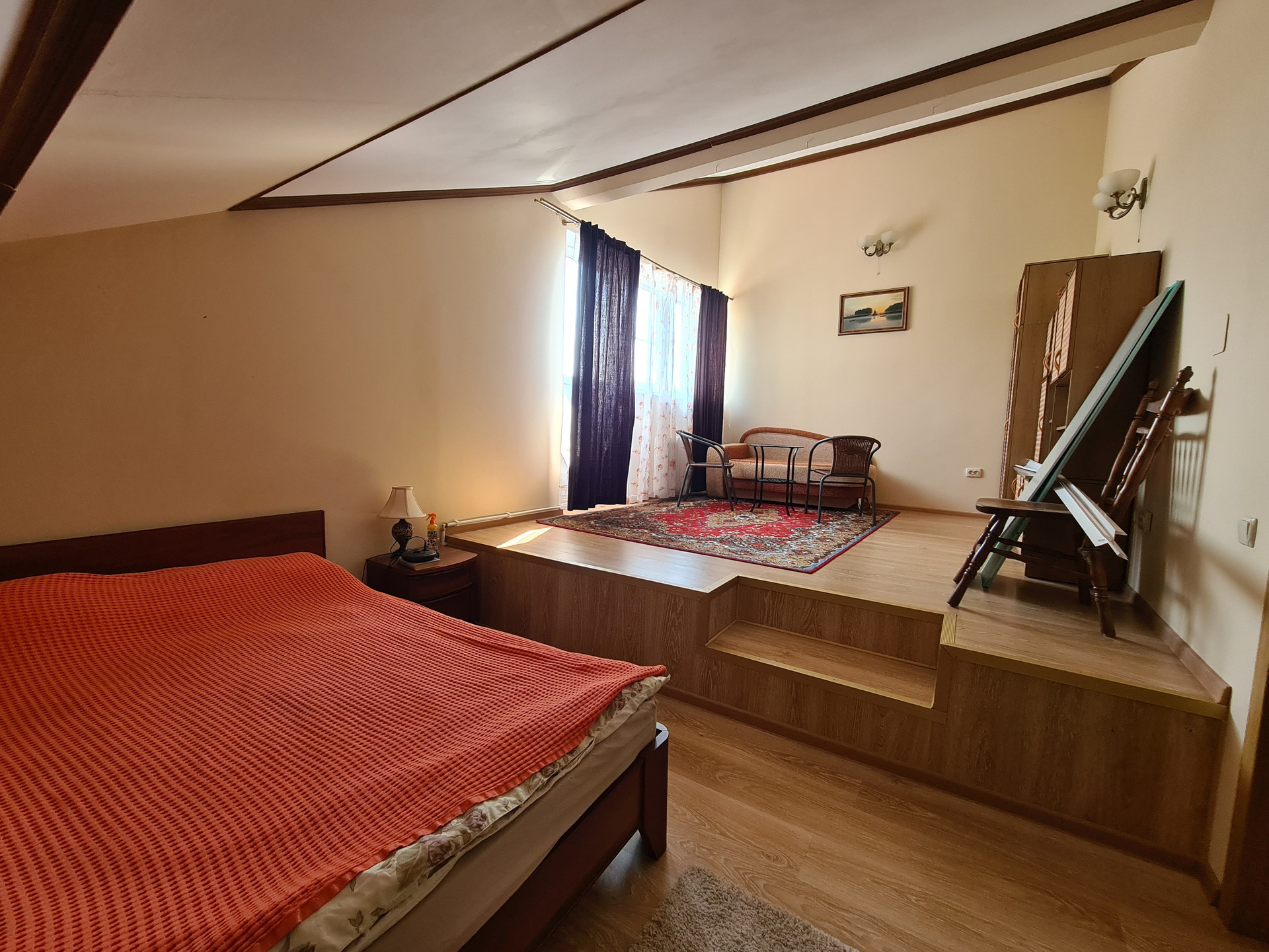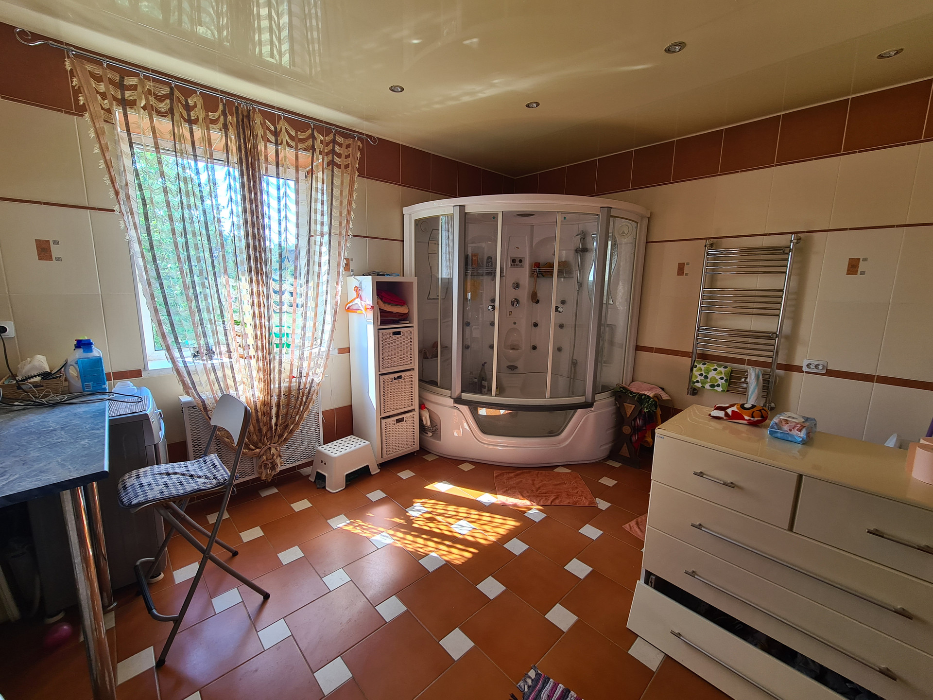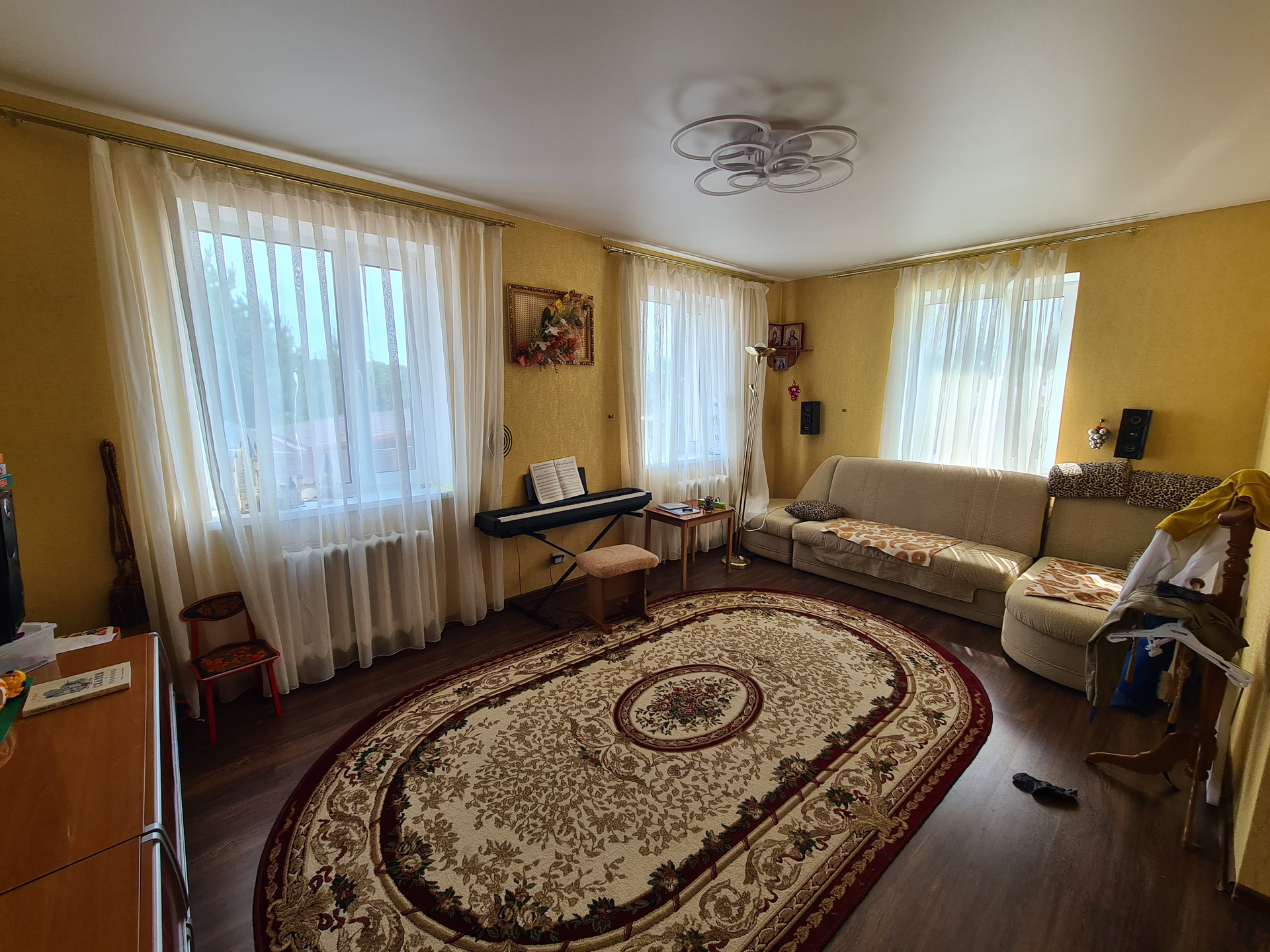 Дом- трехэтажный (мансарда и подвальное помещение) 241.5кв.м материал стен- бетонокерамзитные блоки , утеплен и обшит сайдингом , фундамент-железобетонные блоки, межэтажные перекрытия-ж/б, крыша-металлочерепица; на первом этаже кухня 19 кв.м., оборудована всей необходимой мебелью и техникой, комната 19 кв.м, совместный санузел 13.7 кв.м., холл 31 кв.м., на втором этаже - две спальни 15.3/25.3 кв.м. ( с выходом на балкон) , кабинет 17.1 кв.м., две гардеробные и веранда 24.5 кв.м. Полы-плитка с подогревом на кухне, в холле и санузле, в комнатах-ламинат. Окна ПВХ.