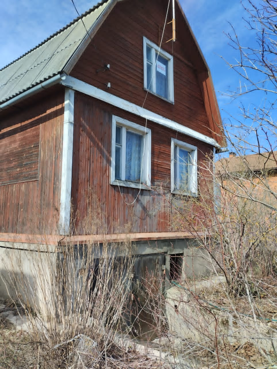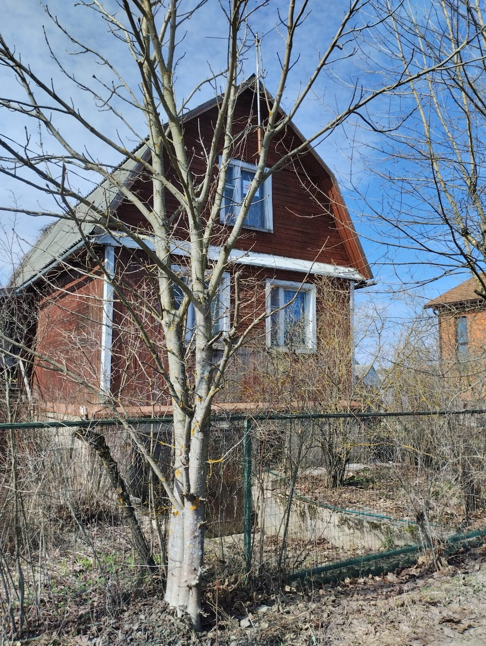 Продается крепкий двухэтажный жилой дом. Общей площадью 80,7 кв.м., на участке 8 соток в СНТ Ольховка-2. Дом построен из бревна, отделан вагонкой под покраску, на фундаменте из блоков. Перекрытие первого этажа плиты, второго – деревянные балки. Под домом имеется просторный гараж. В дом проведен магистральный газ и свет. Вода на участке. СУ уличный. На первом этаже дома находится кухня, гостиная и спальня, на втором этаже – хол и большая спальня.  Отопление печное. Подключена газовая плита. Можно подключить газовый котел и отопление. Участок ровный, правильной формы, огорожен забором. На участке имеются плодово-ягодные кустарники и деревья: несколько яблонь, смородина, малина. СНТ граничит с д. Борозда, в 2 минутах езды от г. Клин. Удобное расположение, в шаговой доступности магазины, остановка общественного транспорта.