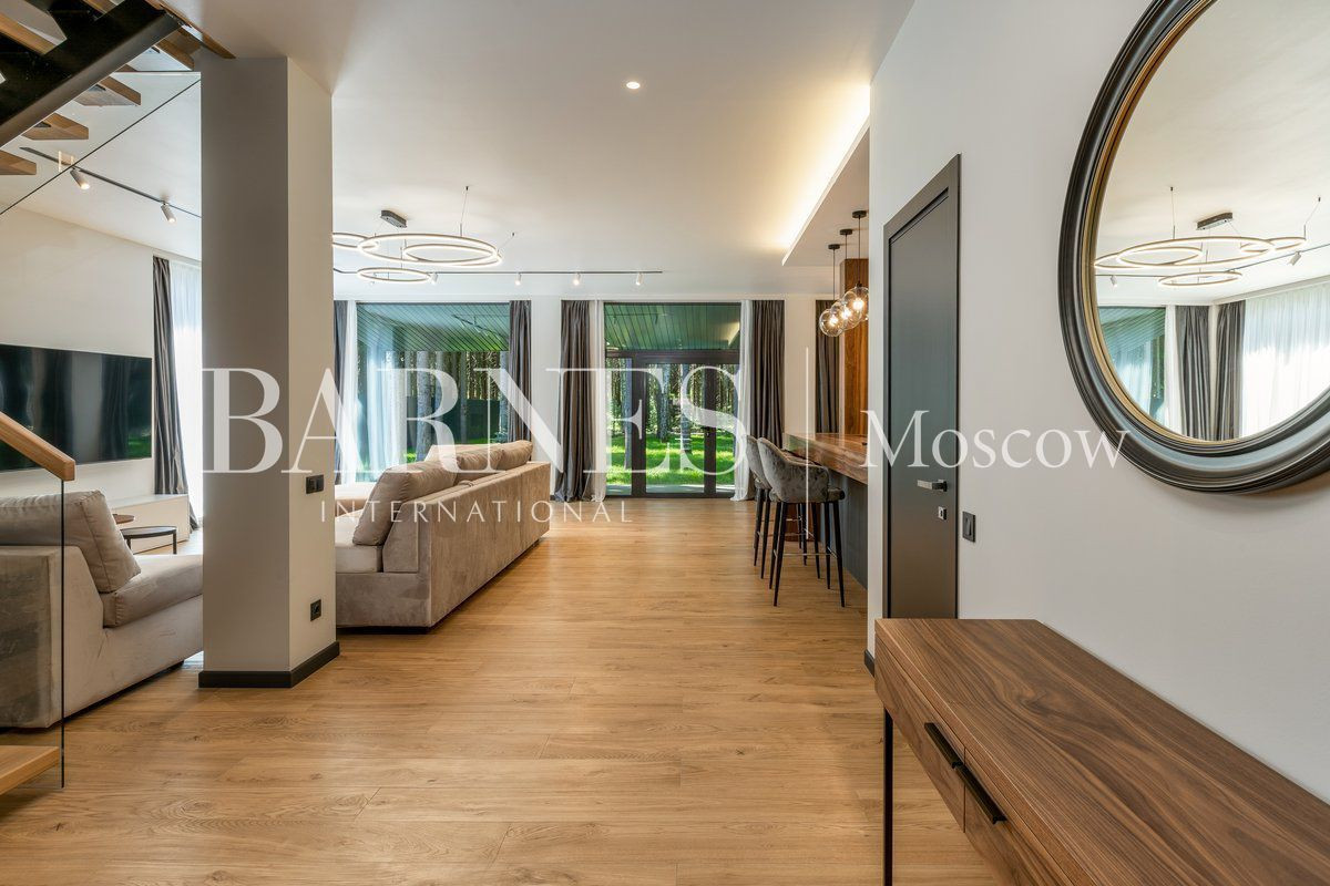 Дом выполнен по авторскому проекту с полной отделкой под ключ, с качественной кухней Hamilton, оснащенной техникой Miele. За дополнительную стоимость возможен вариант полной меблировки дома.