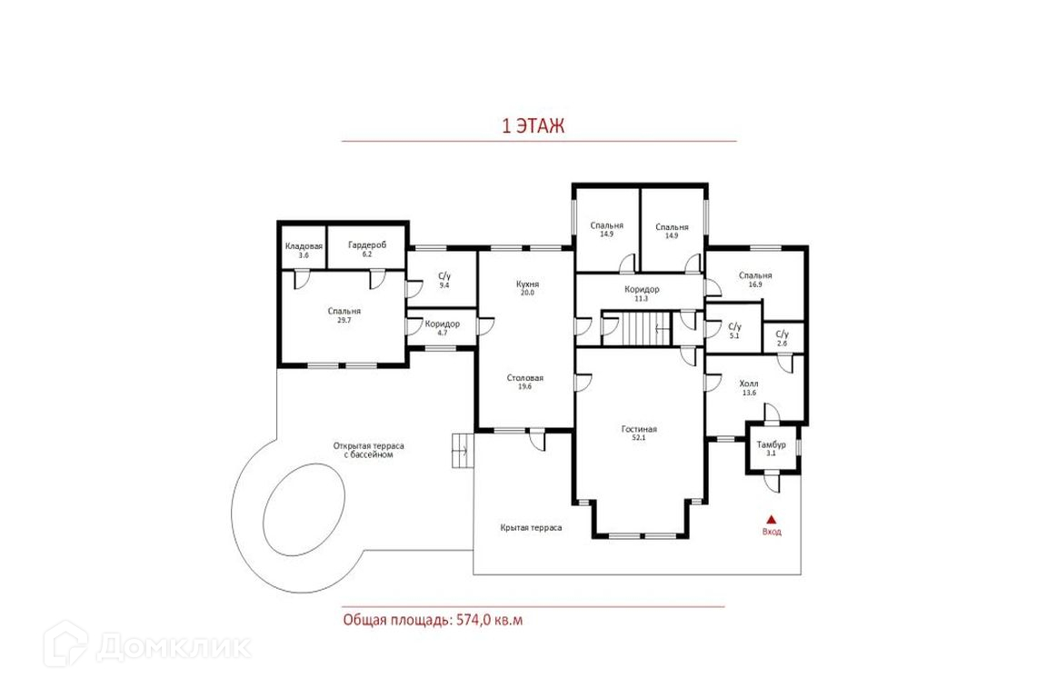 Общая площадь 574 м2