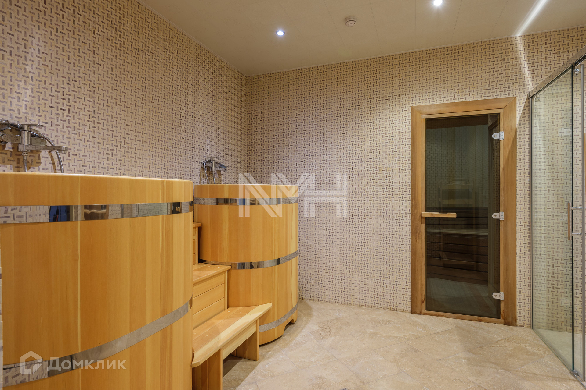 Цокольный этаж: сауна с комнатой отдыха, душем и с/у; кинозал, котельная, холодный погреб, винная комната, 3 кладовки, постирочная, прачечная;