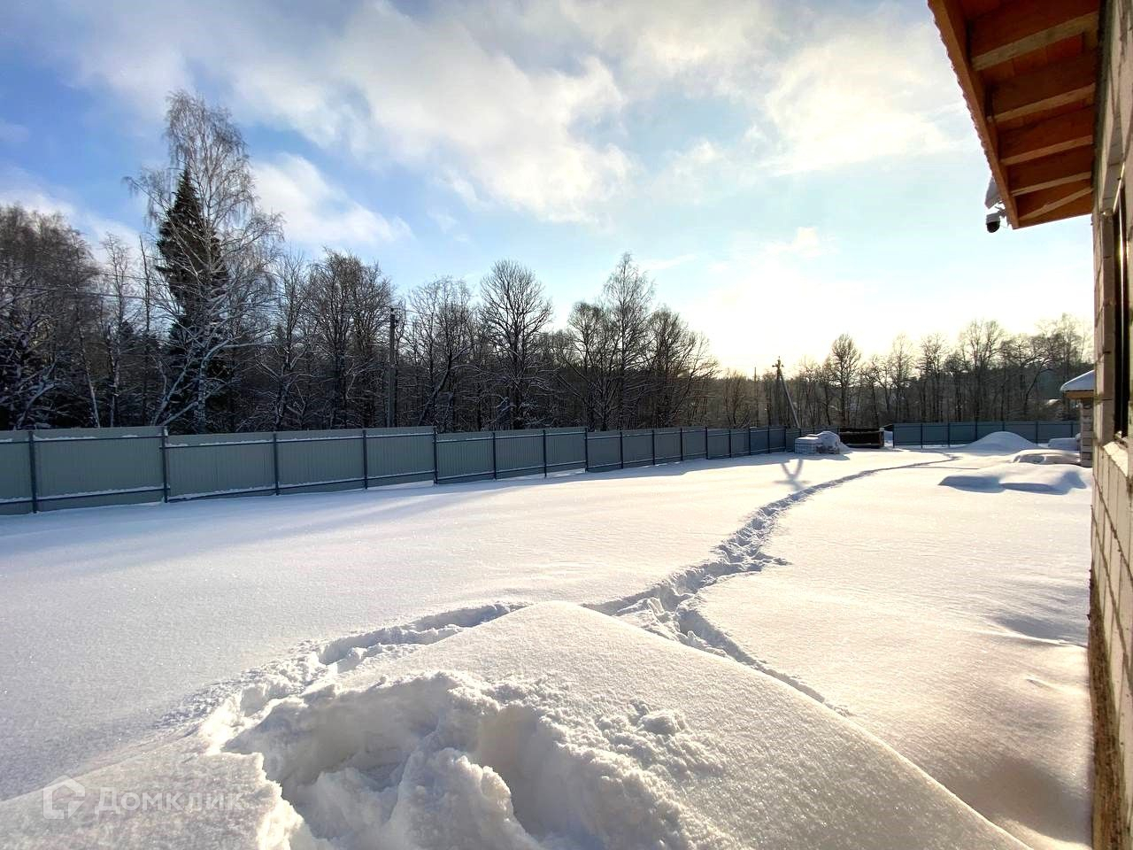Участок  сухой, выровнен и огорожен металлическим забором. Граничит с лесом - красивейший вид из окон дома. В шаговой доступности протекает река Москва.