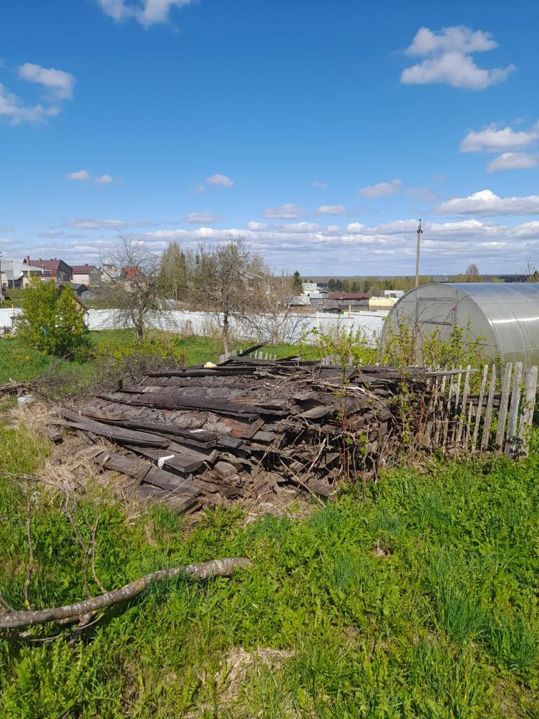 На участке есть маленький щитовой домик.