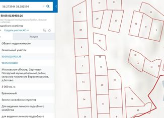 Продаю земельный участок по адресу: Московская область, Сергиево-Посадский г.о., сельское поселение Березняковское, д. Ботово 30 соток. Кадастровые номера: 50:05:0130402:23; 26; 10; 7; 18 Владею земельными участками на праве аренда (переуступаю право аренды), срок аренды 10 лет с 2013 года. |