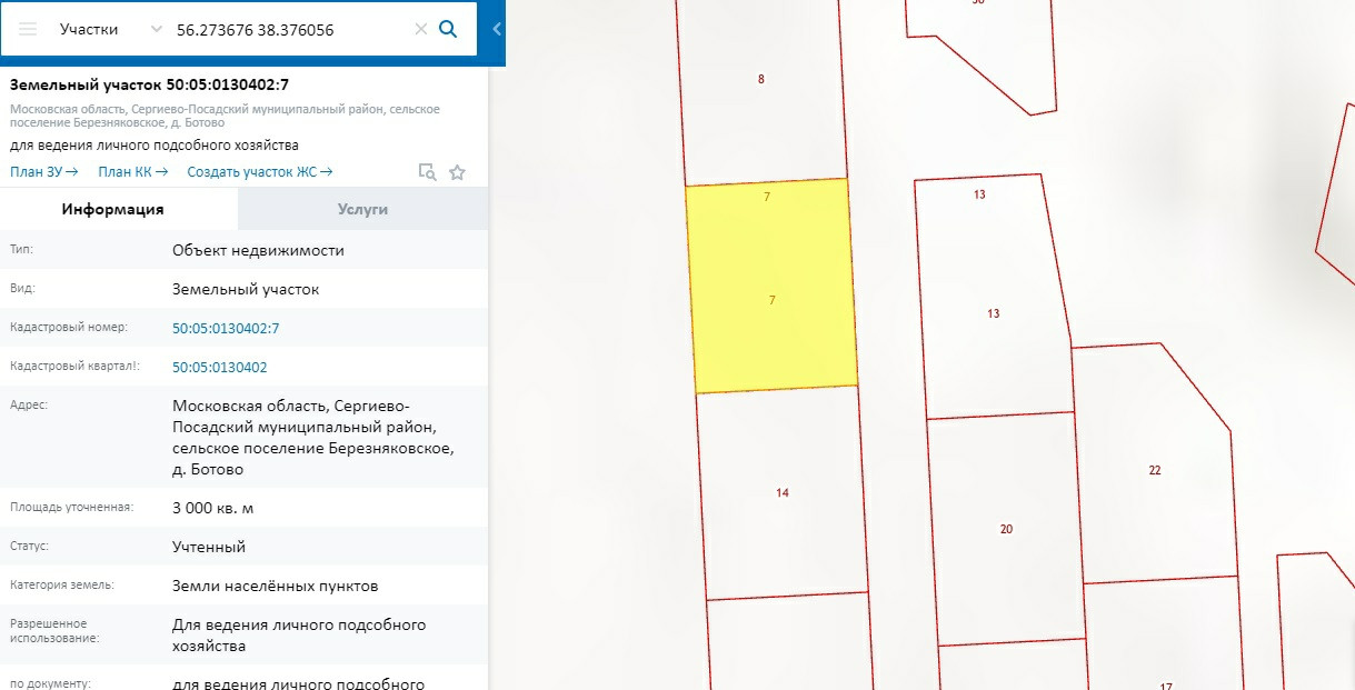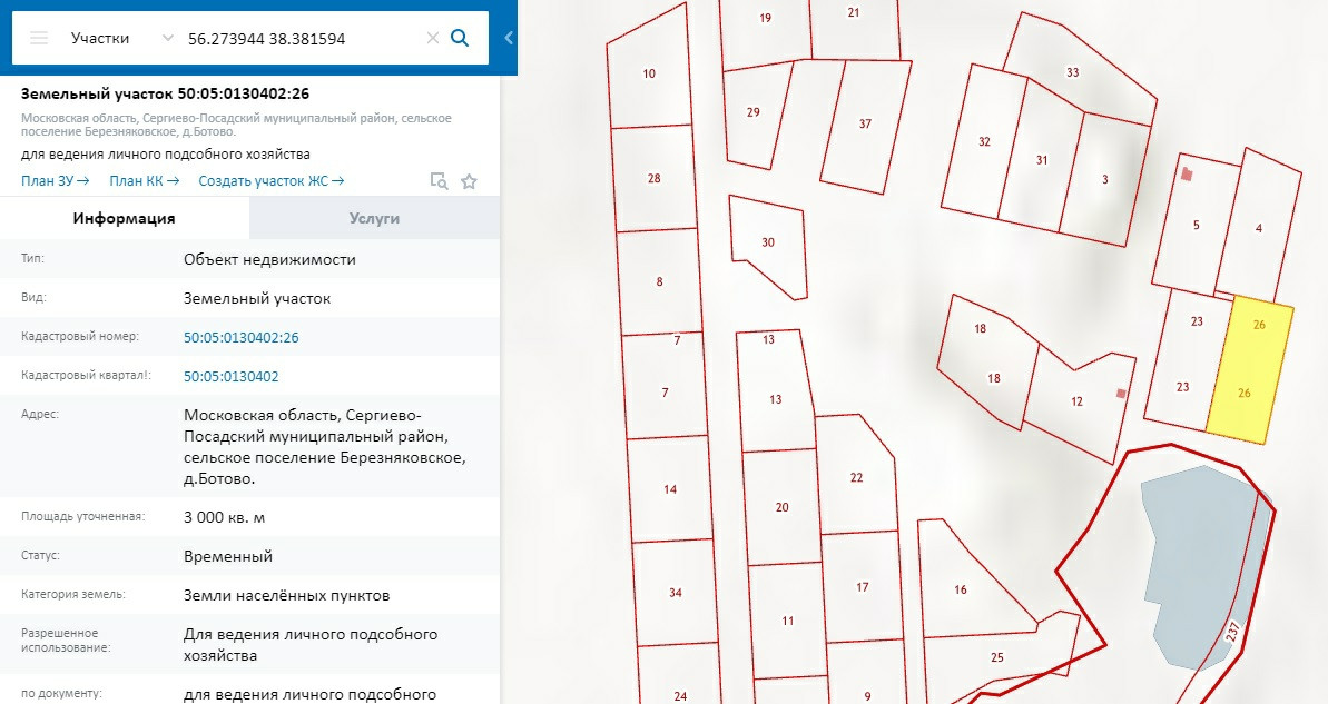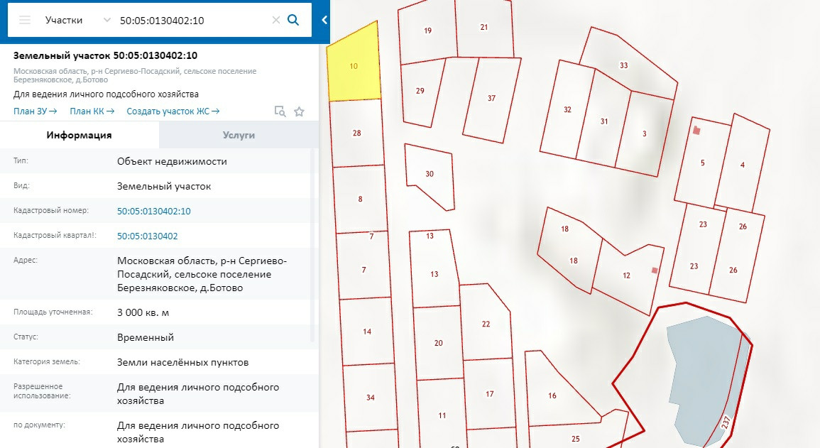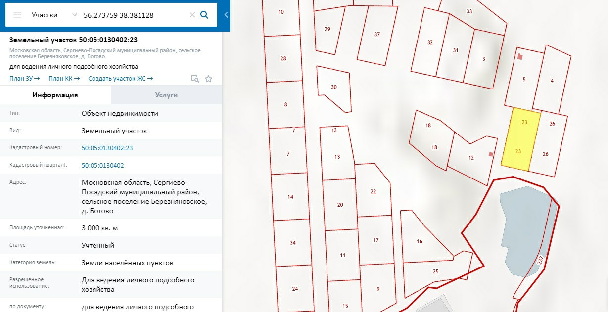 Кадастровые номера: 50:05:0130402:23; 26; 10; 7; 18