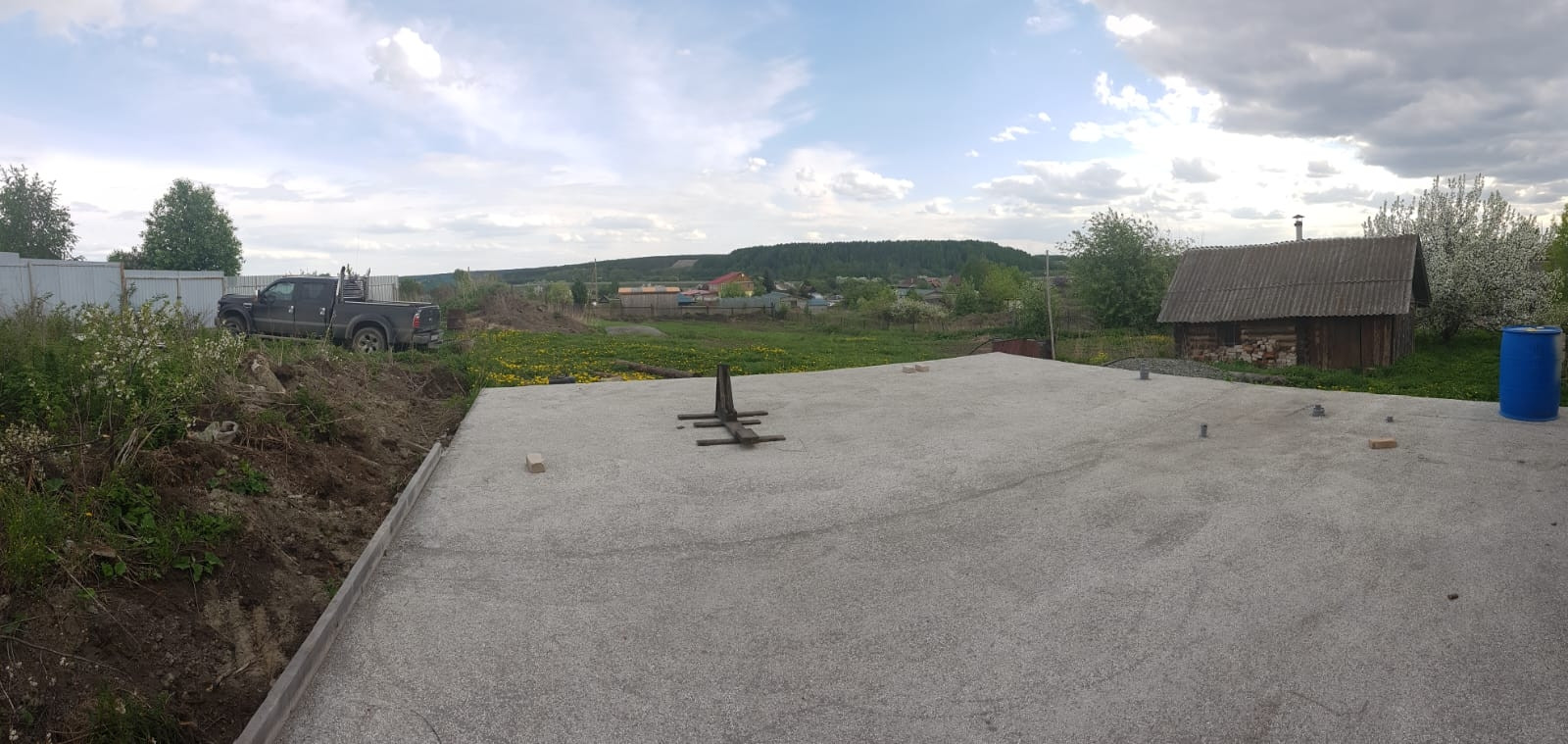 На участке 25 соток есть новый фундамент размером 8.5*9.5 с подведенными коммуникациями ( скважина, септик)