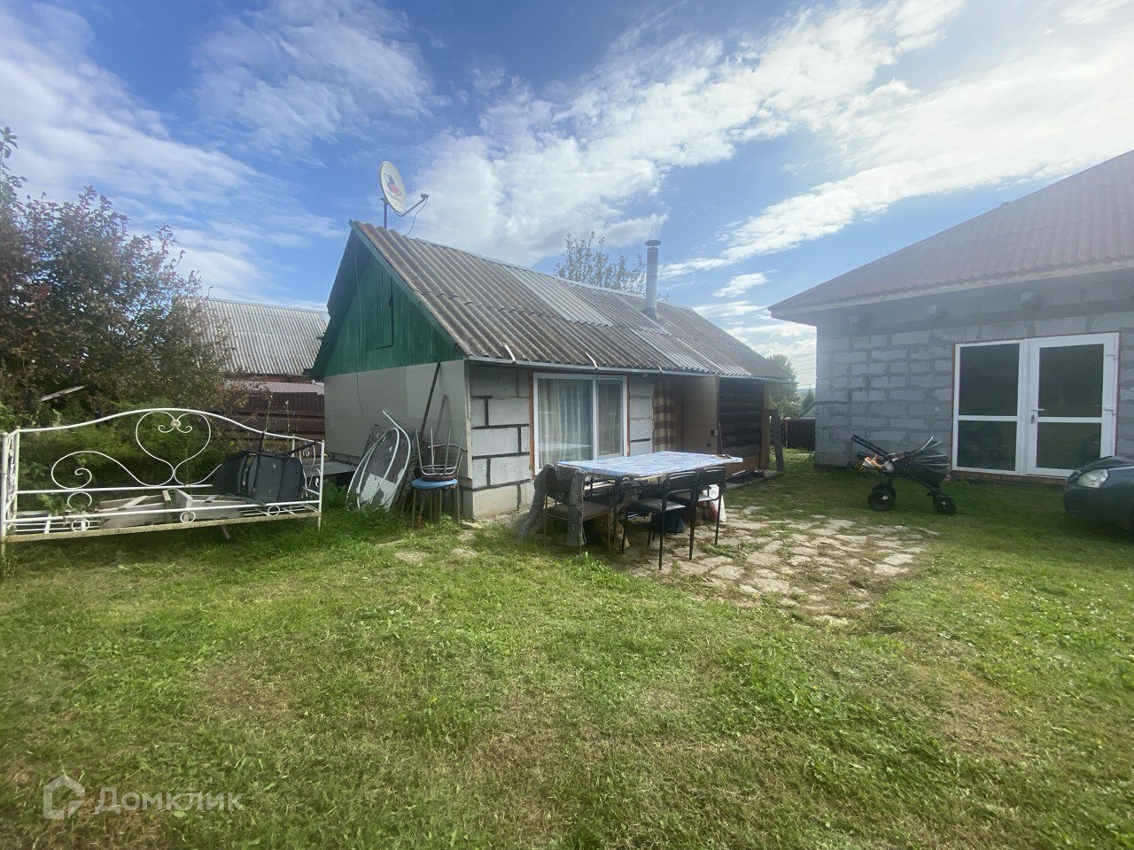 На участке имеется баня с бассейном, различные насаждения и деревья.