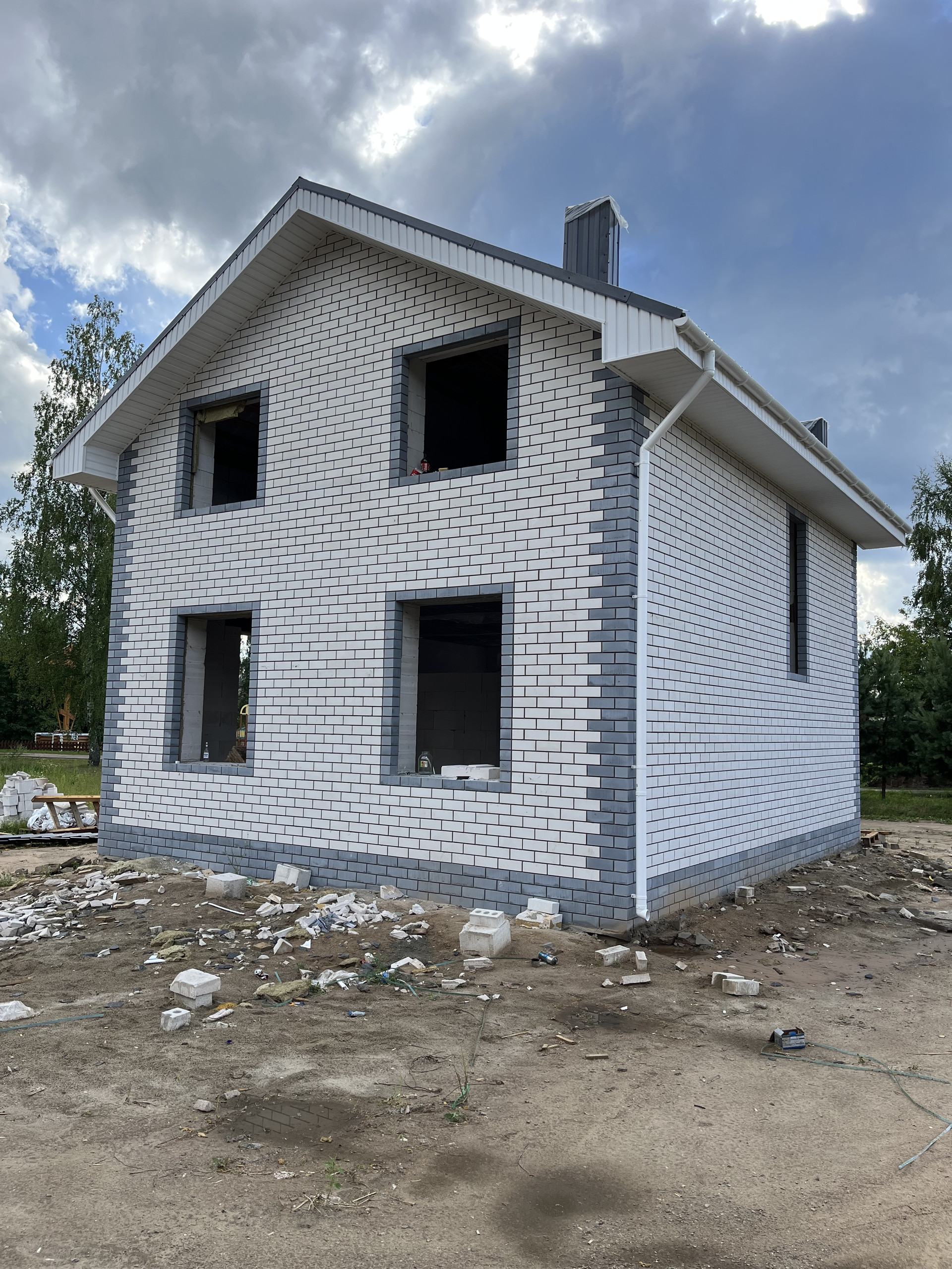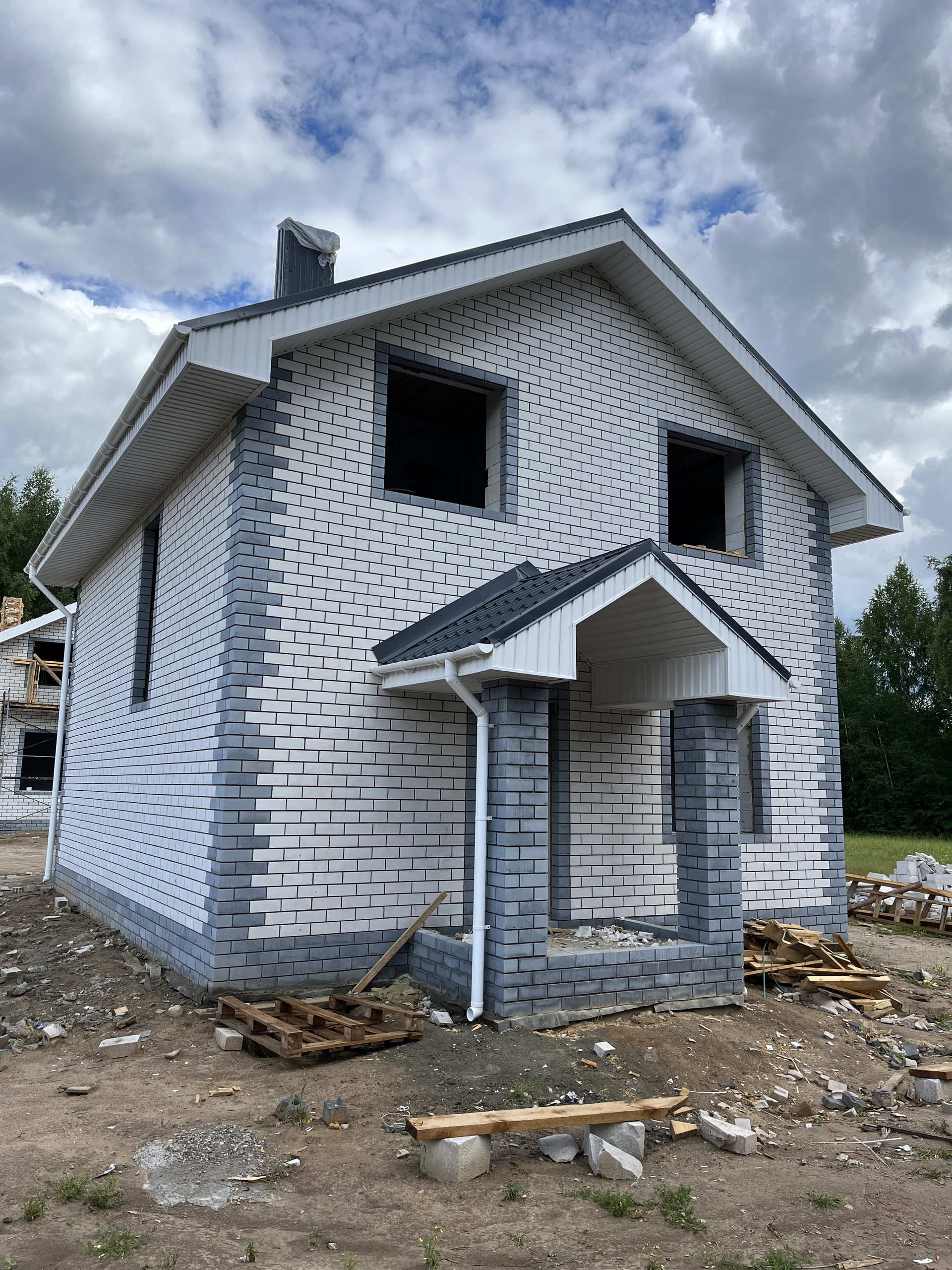 ▶Блок 300 мм марки D500 с утеплением и обложен кирпичом.
