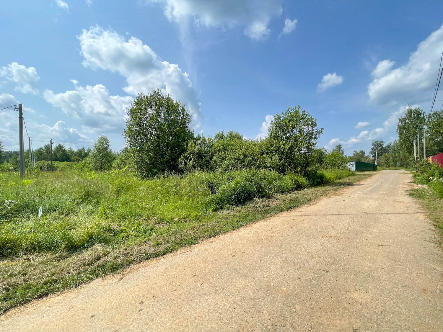 Электричество 15 кВт III фазы по границе участка. Участок 20 соток, размер участка 55*40*54*33 метров. Участок в собственности физического лица, более 10 лет. Участок отмежеван, кадастровый номер: 50:07:0070507:425. Подъезд к участку асфальтированный, круглогодичный, деревня жилая большая, многие живут постоянно.