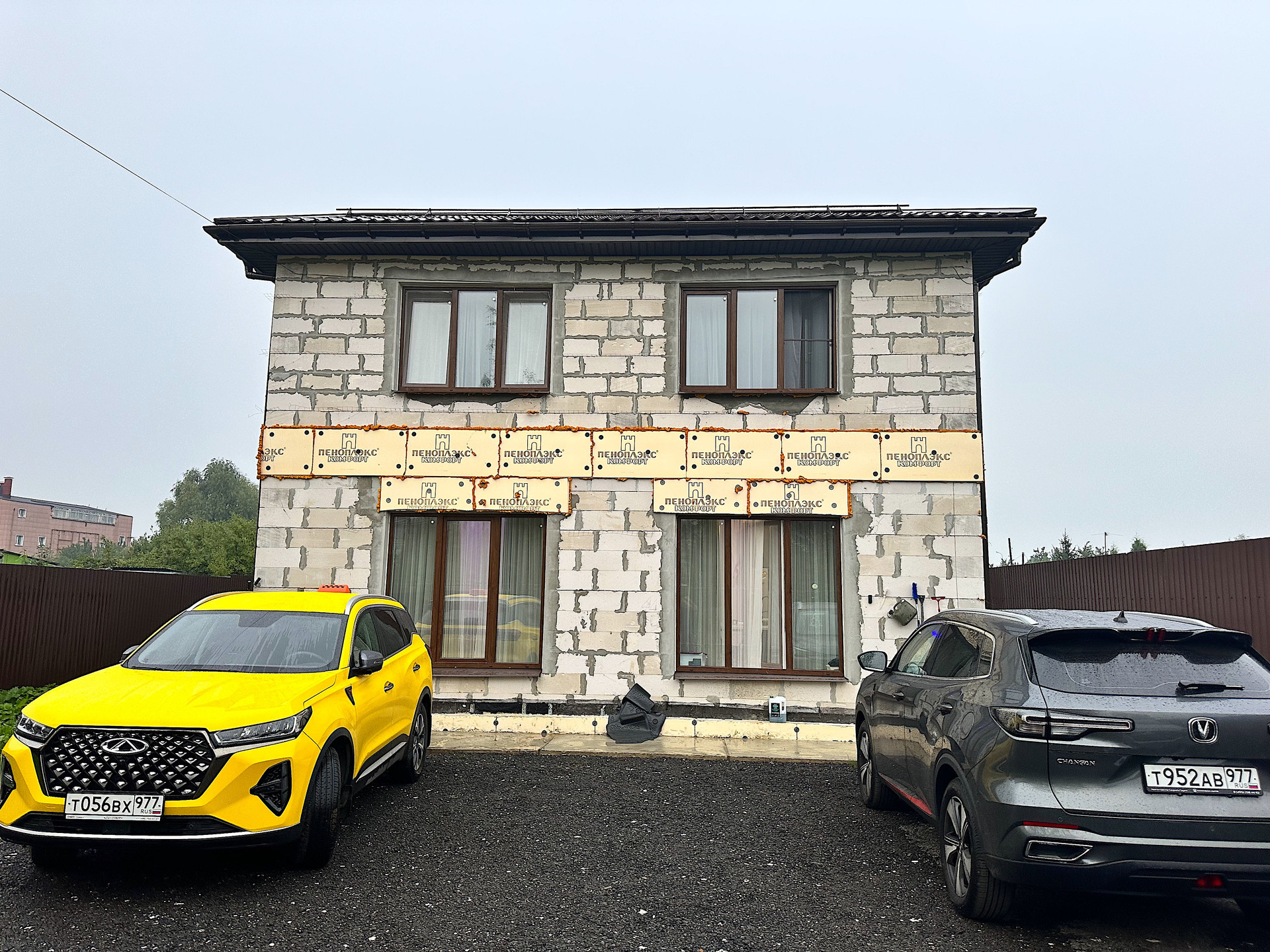 Коммуникации: – свет 15 кВт, вода - колодец 7 метров (7 колец), канализация - переливной септик (3 бетонных кольца), газ в 3м метрах от границ земельного участка (подключение 70 000 рублей). В настоящее время завершаем работы по утеплению фасада, установки отливов и водосточной системы.