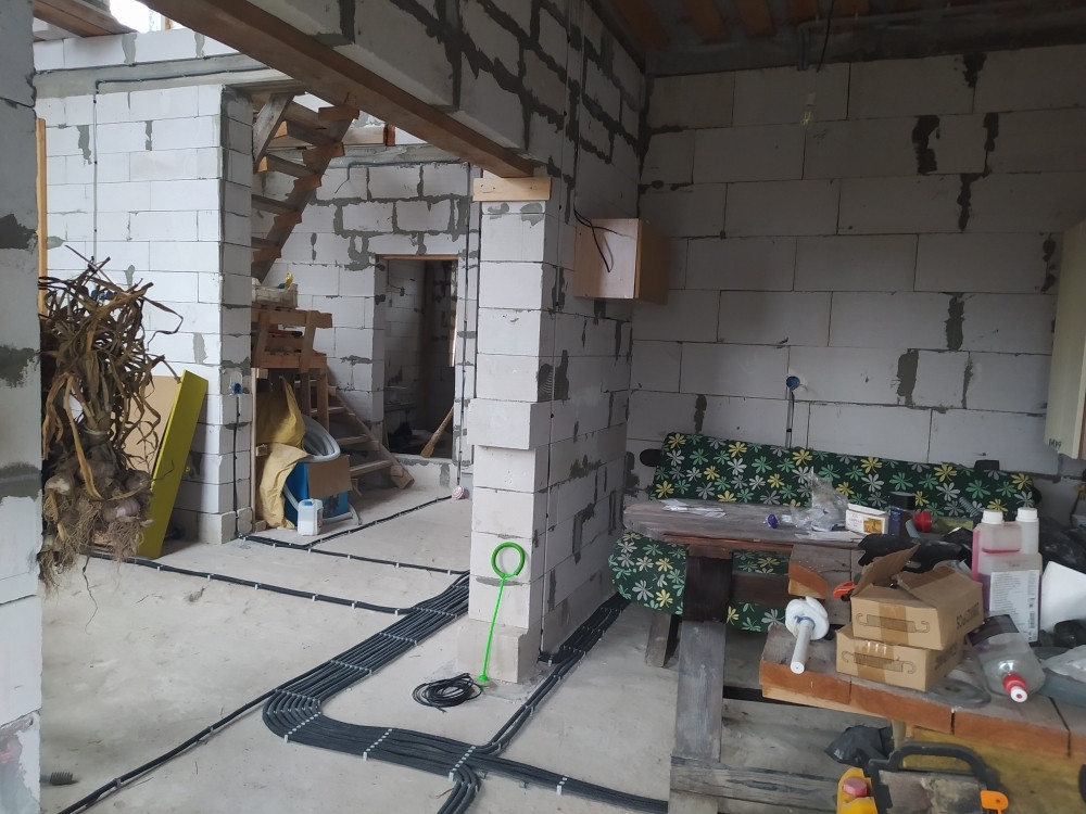 Фундамент плита. На 1 этаже - котельная - 6,5 м.кв, спальня - 9 м.кв , кухня - 12,7 м.кв, гостиная - 22,4 м.кв, санузел - 7 м.кв; 2 этаж 3 спальни по 13 м.кв. и санузел.