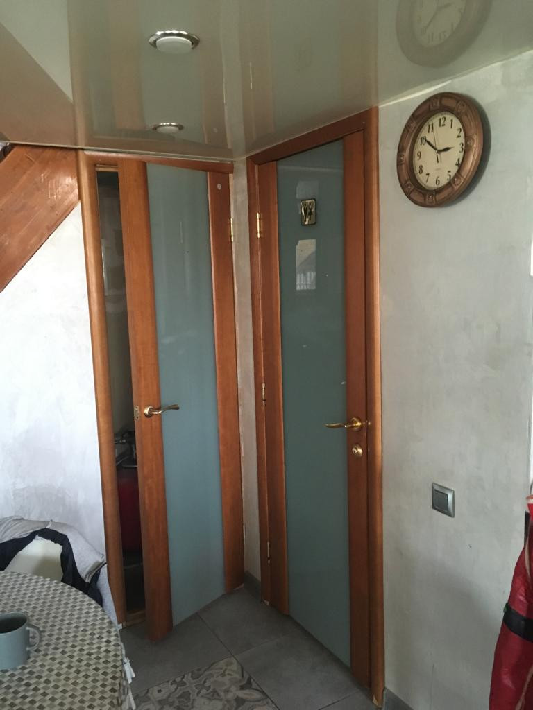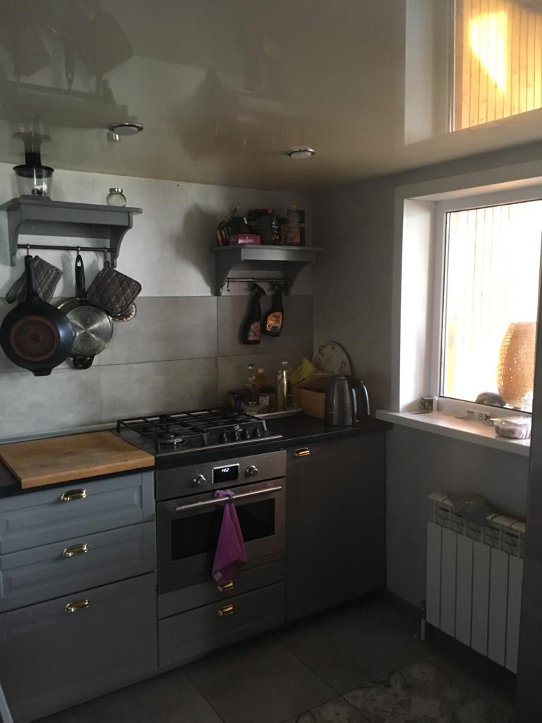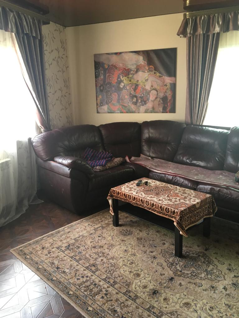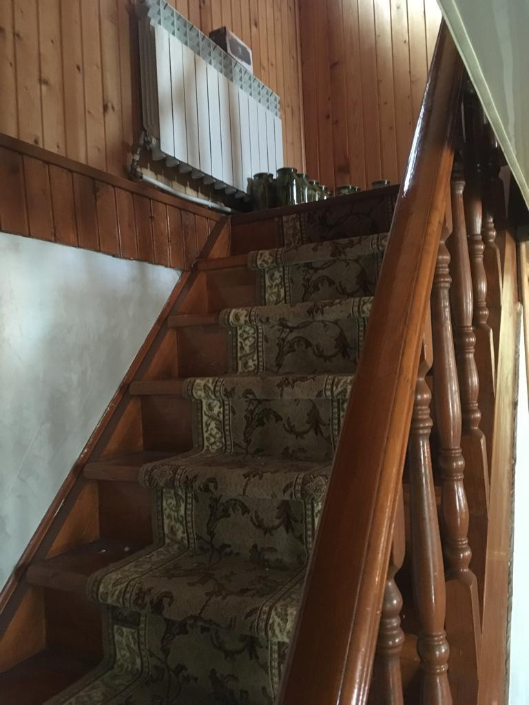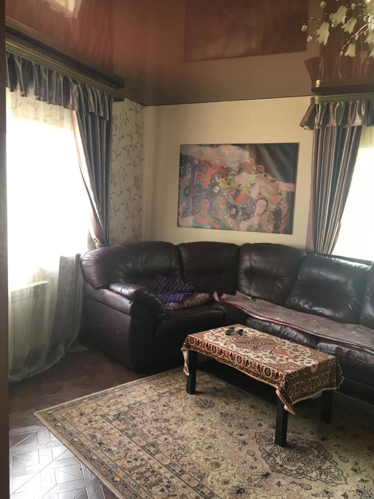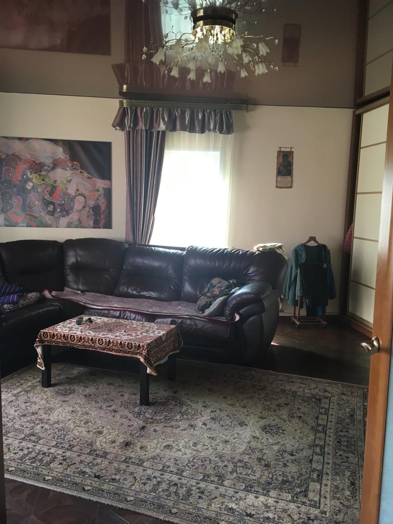 1 этаж: просторная веранда, холл соединяется с кухней, бойлерная с новым электрическим котлом (380 вольт), гостиная 30 кв.м., большой санузел. Высота потолков 3 метра. Потолки везде натяжные, на полу паркетная доска. Пол всего первого этажа теплый. Входная сейф- дверь, межкомнатные двери, пластиковые окна, итальянские радиаторы.