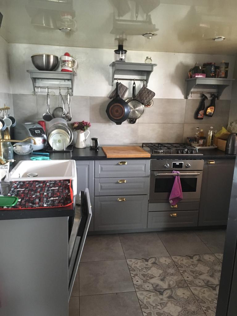 Остаются встроенные шкафы, кондиционер и новый кухонный гарнитур с техникой.