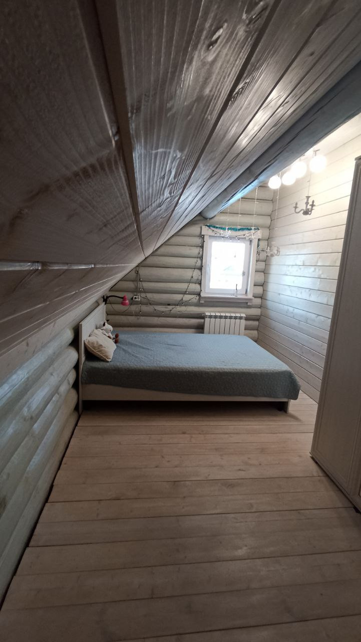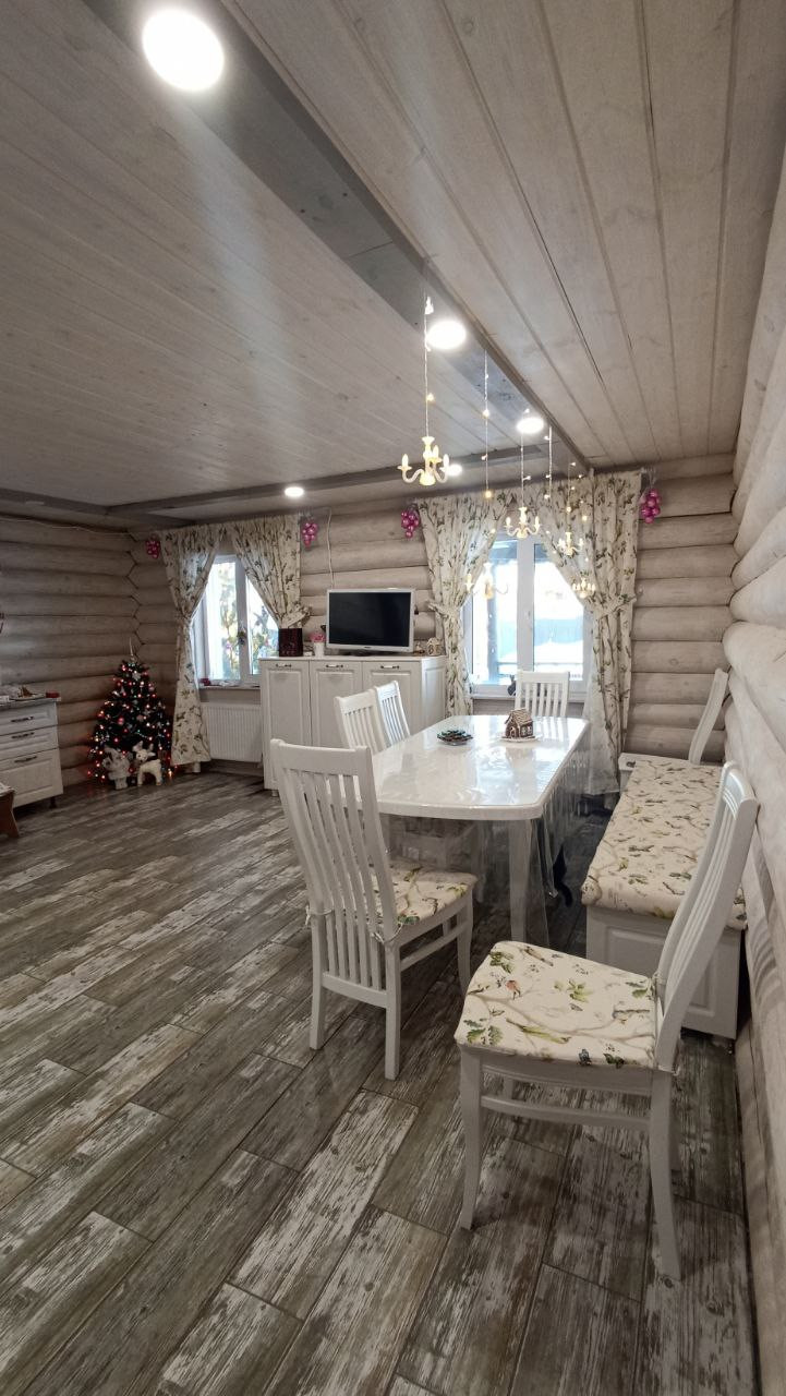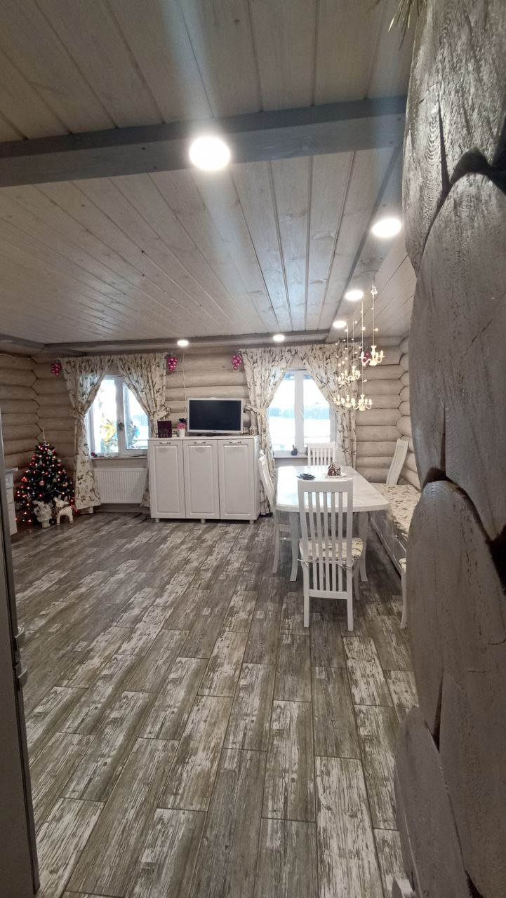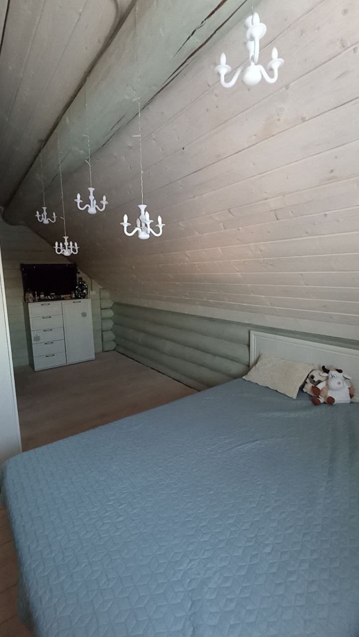 Дом построен в 2021 году, скважина, септик, заведён газ, тёплые полы в доме и бане (залитый тёплый дом), дополнительно установлены радиаторы. Дом два этажа, на 1-ом большая кухня-столовая, гостиная (требуется окрастить стены, на полу плитка и тёплый пол, на потолке отделка); на 2-ом этаже три спальни. Баня площадью 22 кв.м. ( тёплый пол, плитка, перегородка между комнатой отдыха и парилкой,  сделана вся разводка воды и заведена канализация). Гараж 4.8*8 м.   Отделена зона котельной (установлены газовый и электрический котёл, отопление от газа), отапливается, ворота подъёмные с приводом.