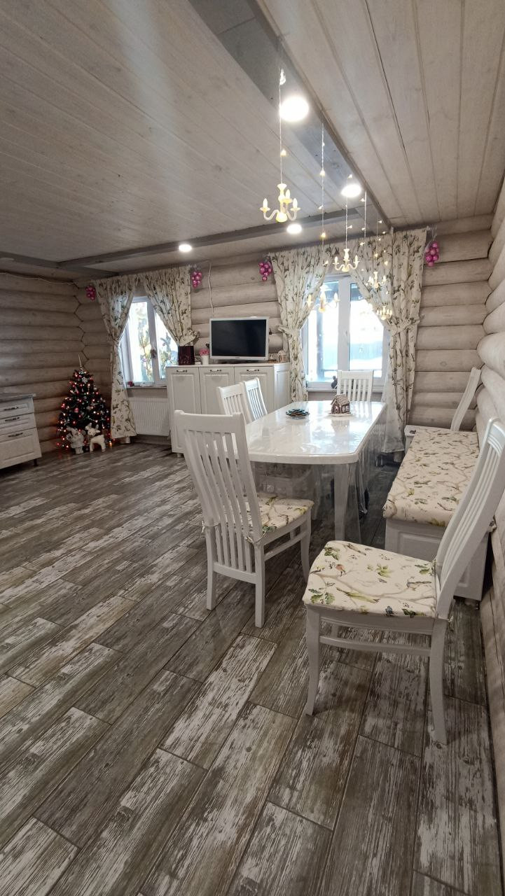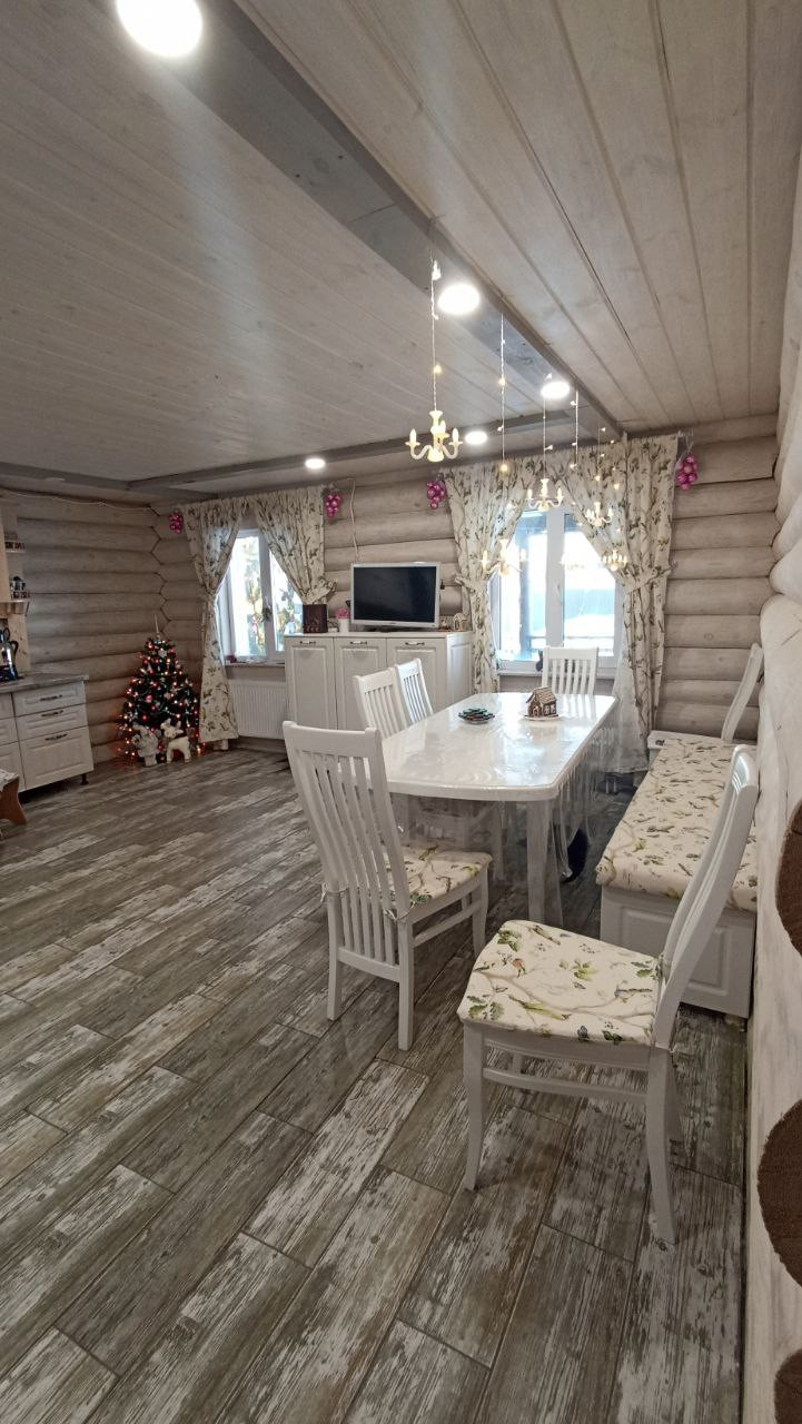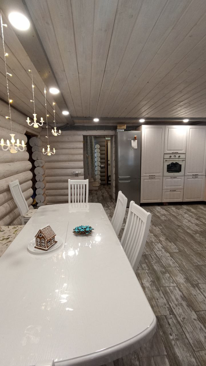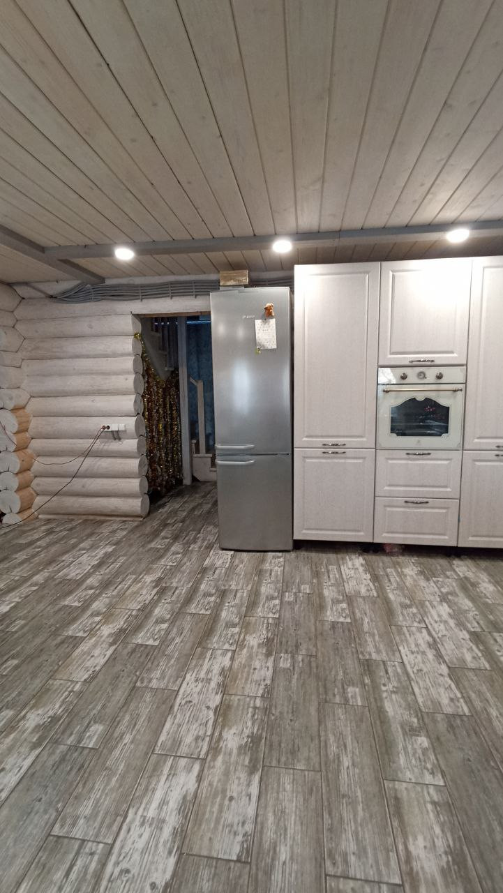 Дом построен в 2021 году, скважина, септик, заведён газ, тёплые полы в доме и бане (залитый тёплый дом), дополнительно установлены радиаторы. Дом два этажа, на 1-ом большая кухня-столовая, гостиная (требуется окрастить стены, на полу плитка и тёплый пол, на потолке отделка); на 2-ом этаже три спальни. Баня площадью 22 кв.м. ( тёплый пол, плитка, перегородка между комнатой отдыха и парилкой,  сделана вся разводка воды и заведена канализация). Гараж 4.8*8 м.   Отделена зона котельной (установлены газовый и электрический котёл, отопление от газа), отапливается, ворота подъёмные с приводом.