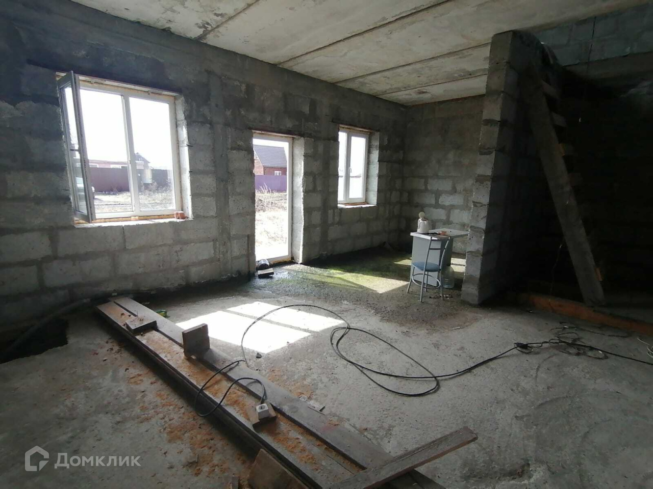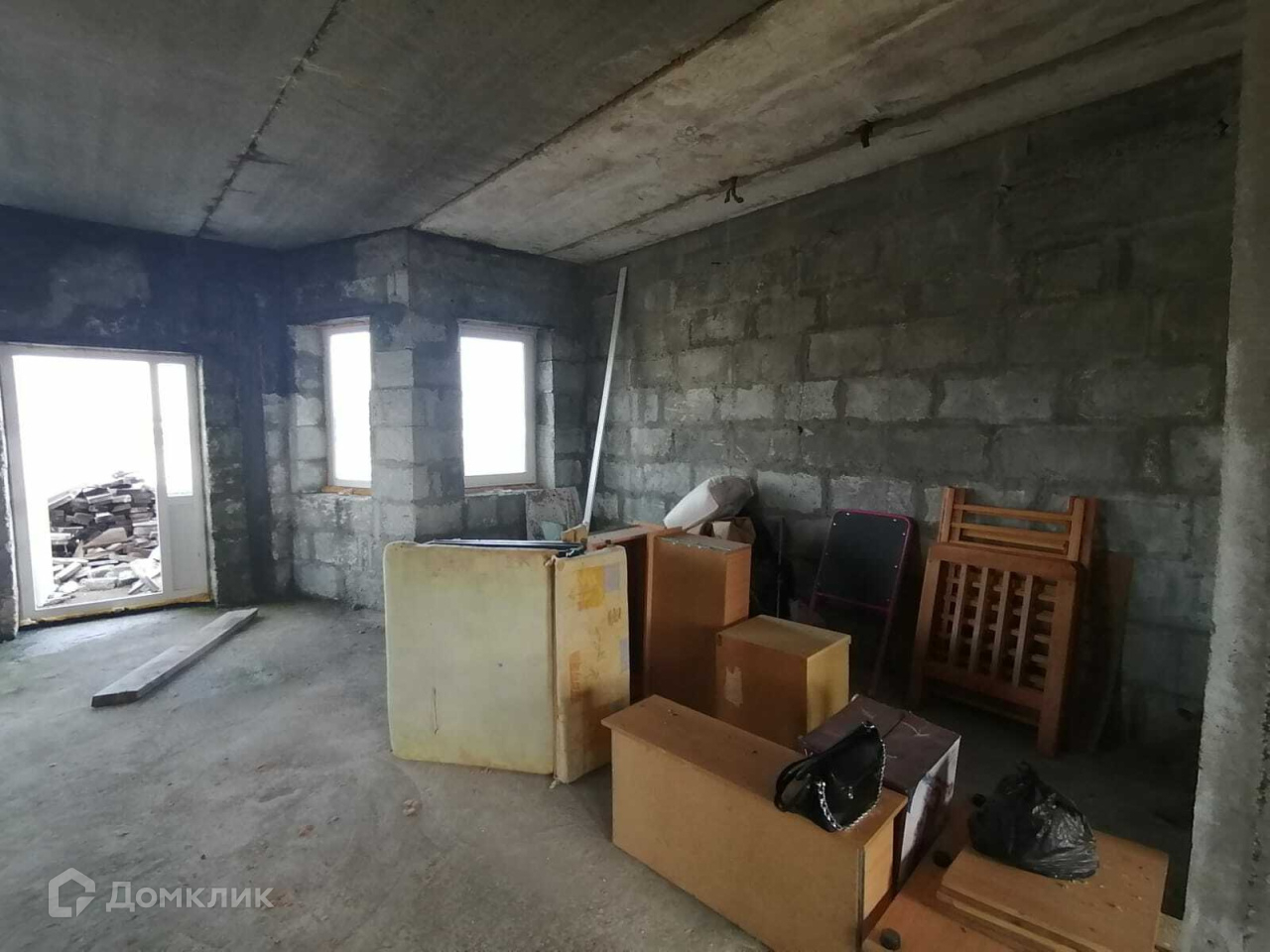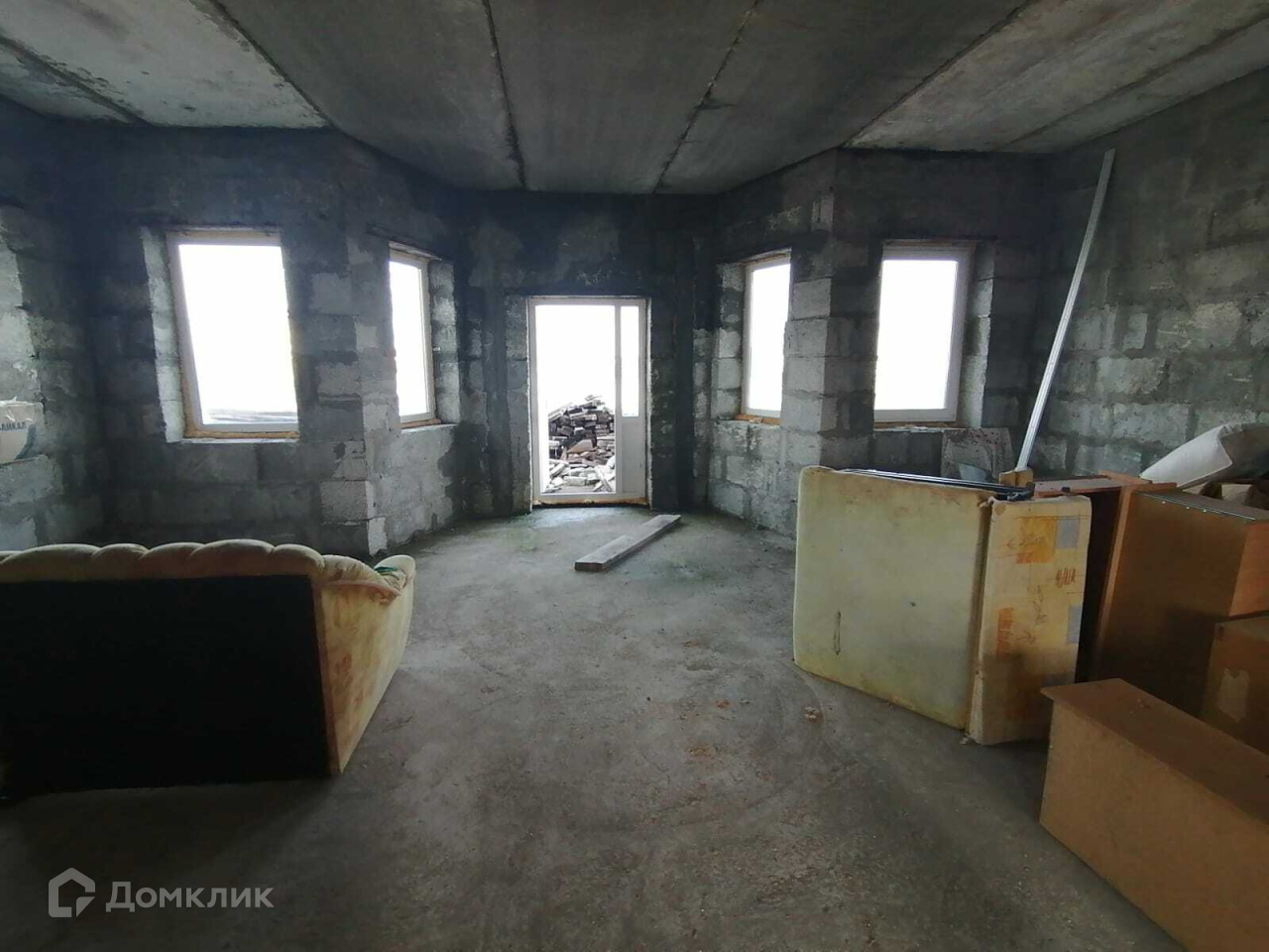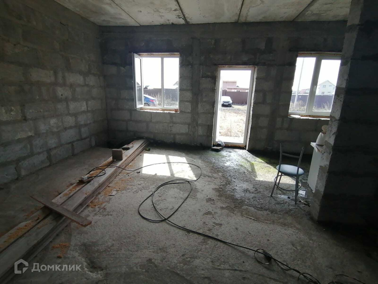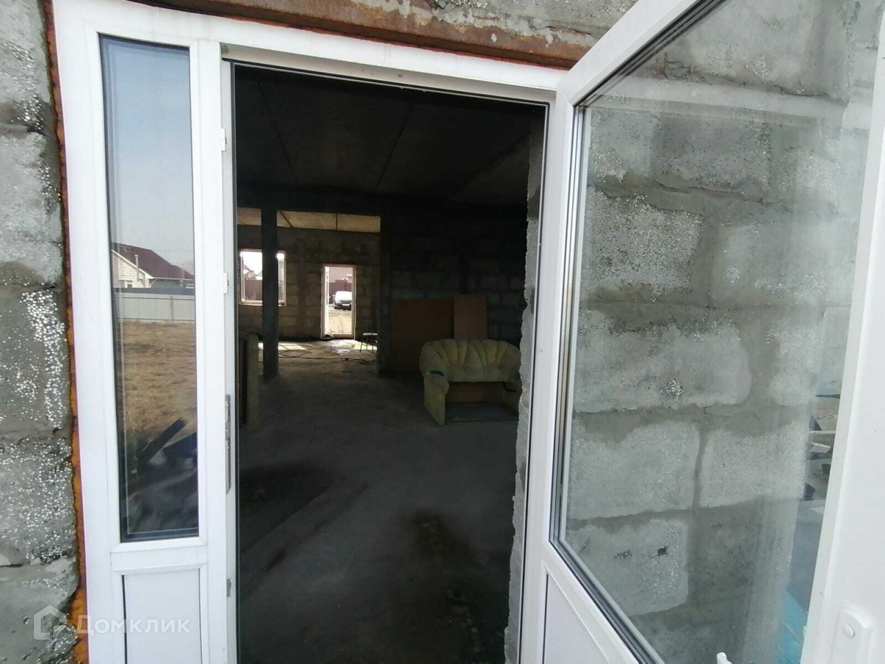 1 этаж: свободная планировка, заливной бетонный пол, вход с улицы и вход со стороны участка.