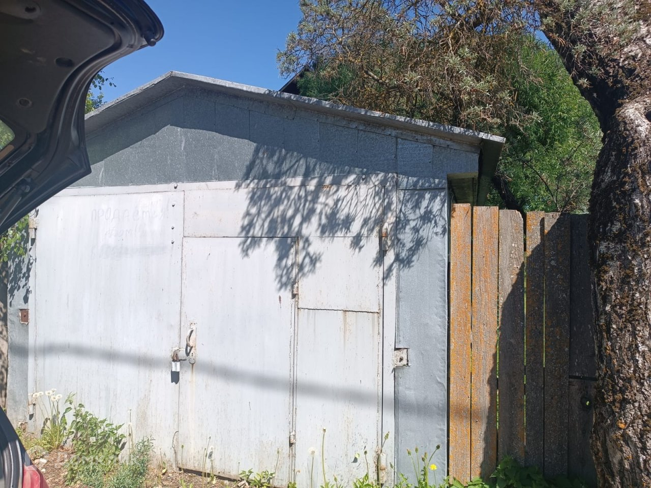 Участок 11 сот. впереди лужайка и гараж  оцинкованный   8Х4 м,, заезд с улицы, кроме того есть хороший  заезд для машин. На участке колодец  ( 9 колец), за домом фруктовые деревья и кустарники.