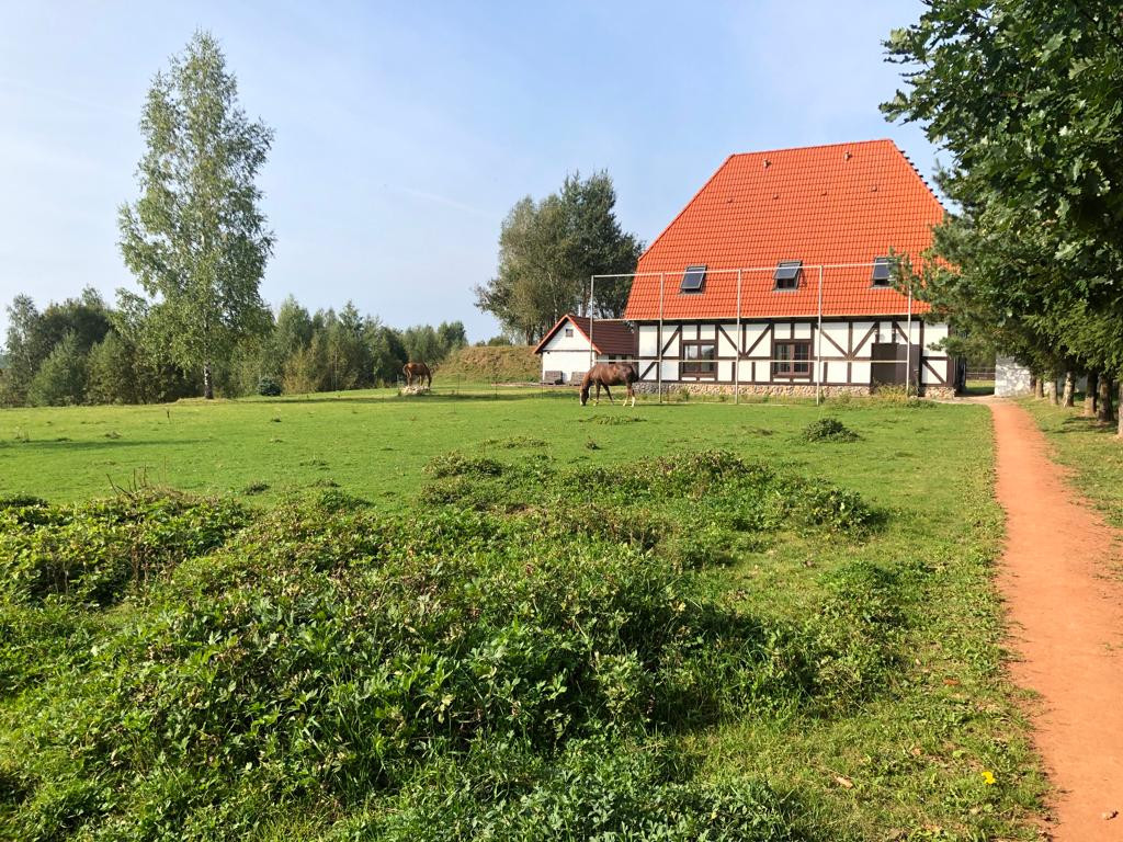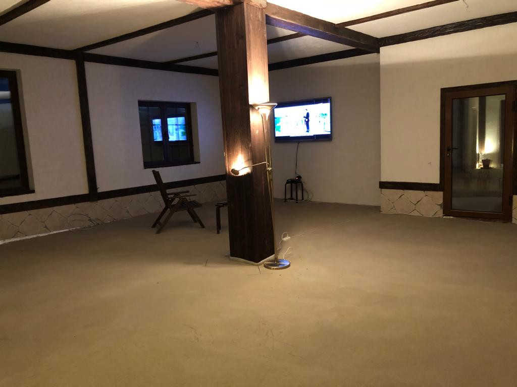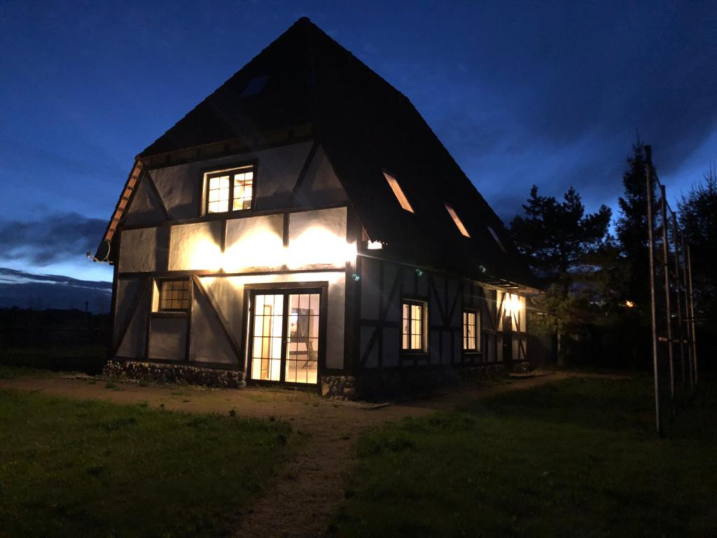 Дом в Баварском стиле (фахверк), стены кирпич, натуральная черепица BRAAS, 2-х этажный 197 м.кв. с мансардой. Центральный газ. Канализация - Топас. Электричество 380 вольт. Первый этаж: теплый водяной пол, большая прихожая, зал 70 м.кв., санузел с душем.  Второй этаж: кабинет-спальня 50 м.кв., комната для гостей, санузел с ванной и санузел для гостей. Третий этаж: большая спальня с видом на водохранилище, санузел с душем и подсобное помещение 30 м.кв.
