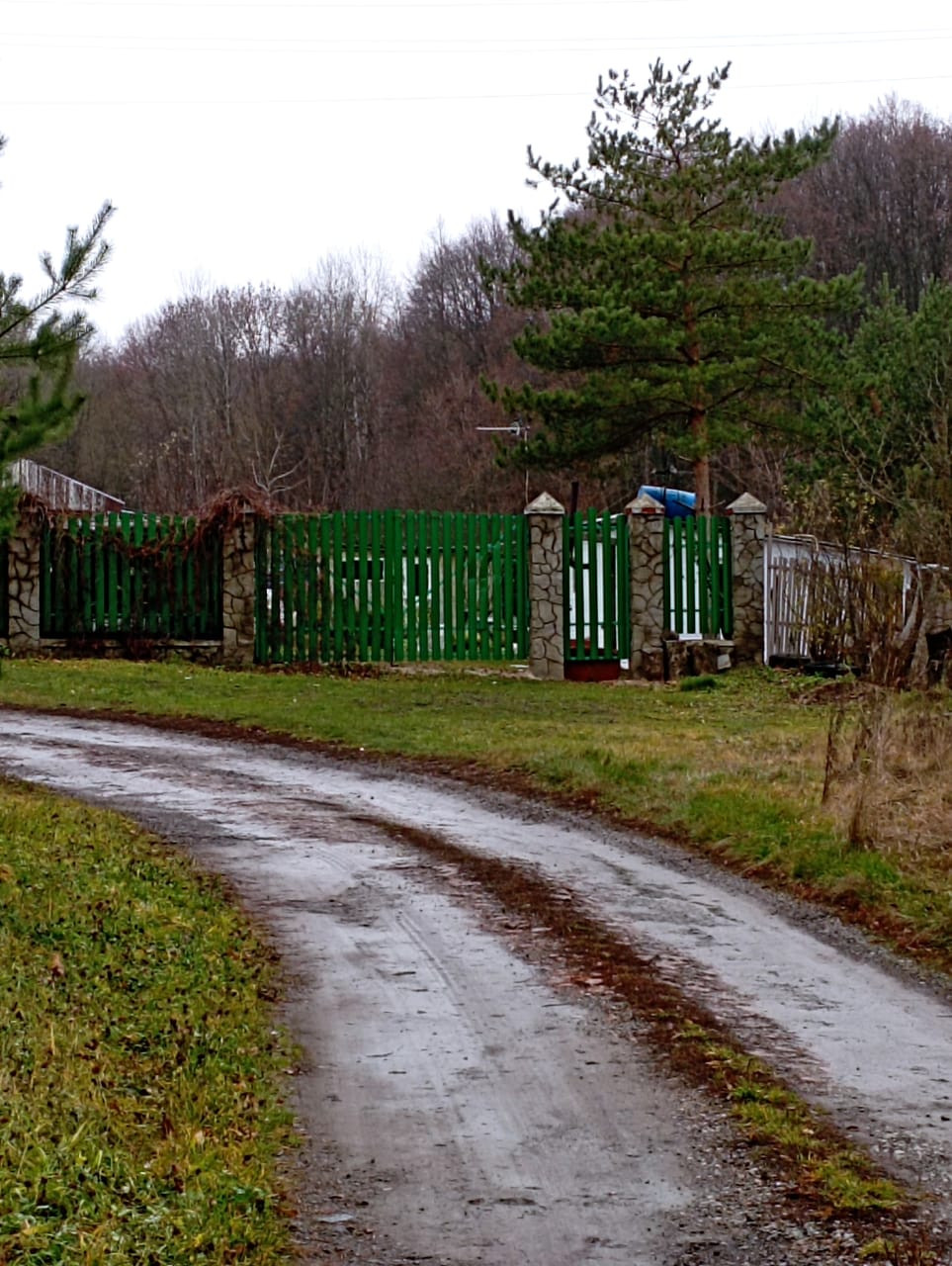 Весь участок огорожен забором.