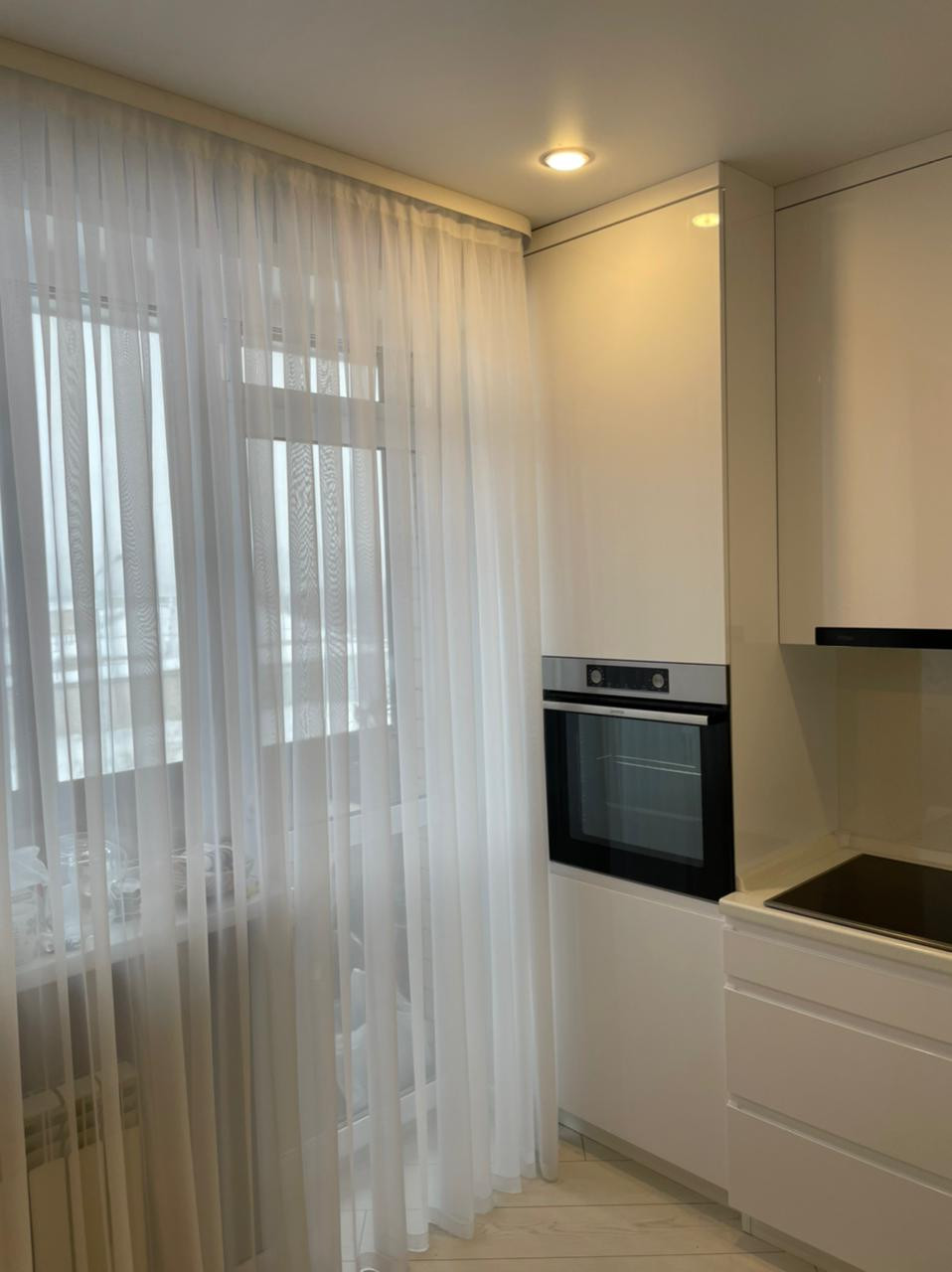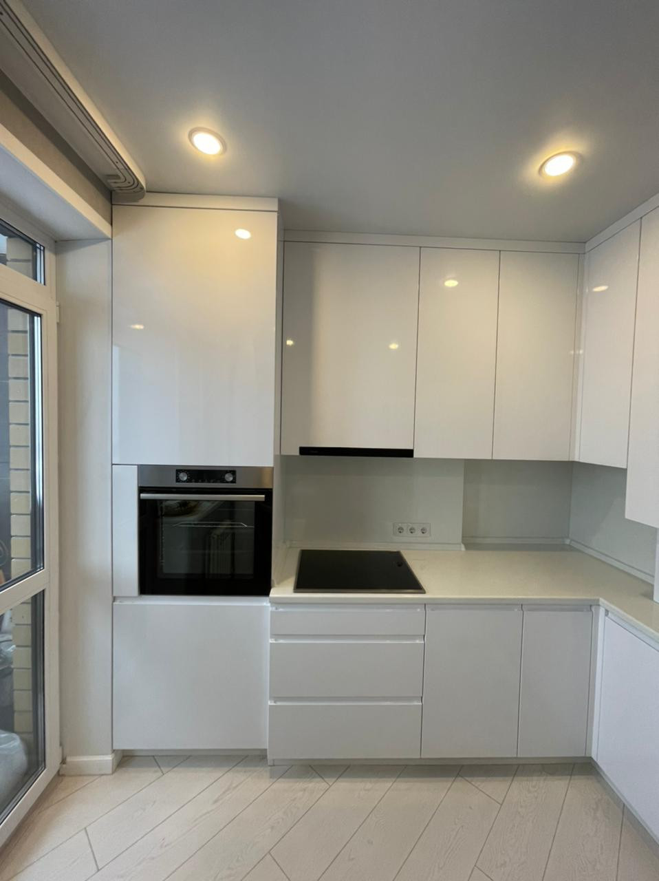 Лоджия из кухни, застеклена, обшита