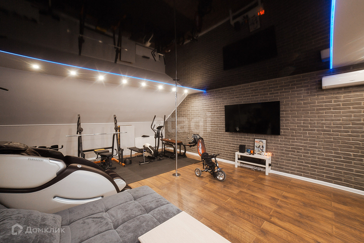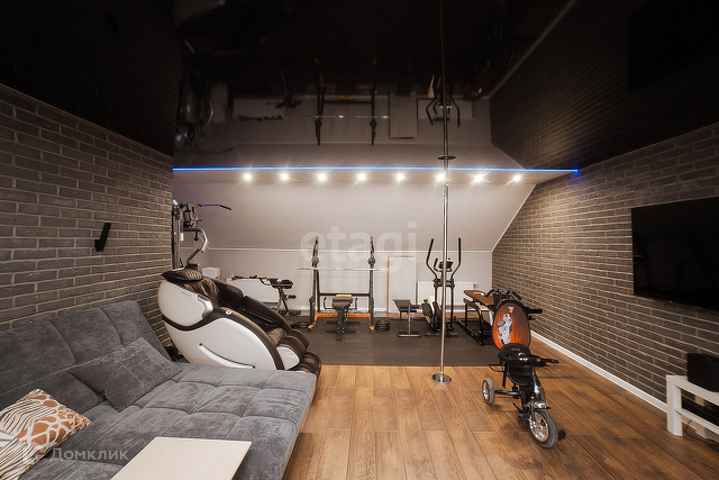 Третий этаж совмещает в себе тренажерный зал, караоке-зону и кабинет.