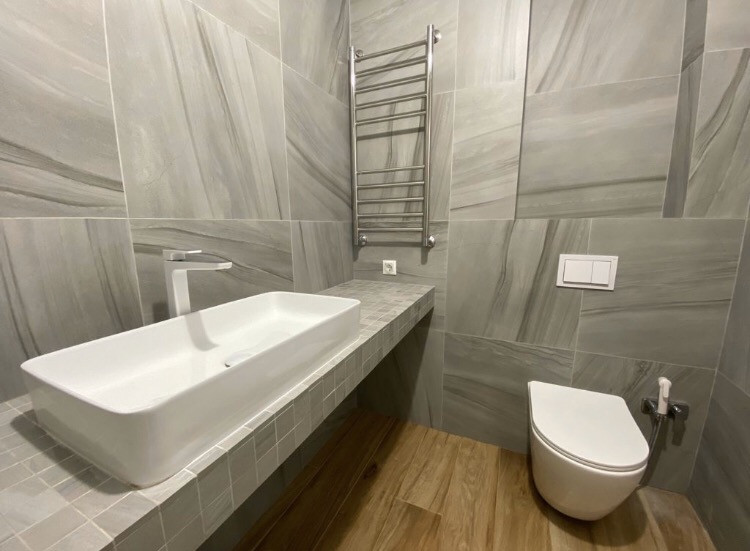Выполнена дизайнерская отделка, с использованием высококачественных, экологичных материалов, делали для себя.