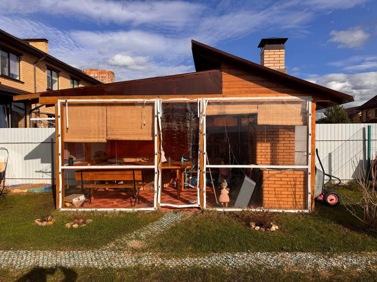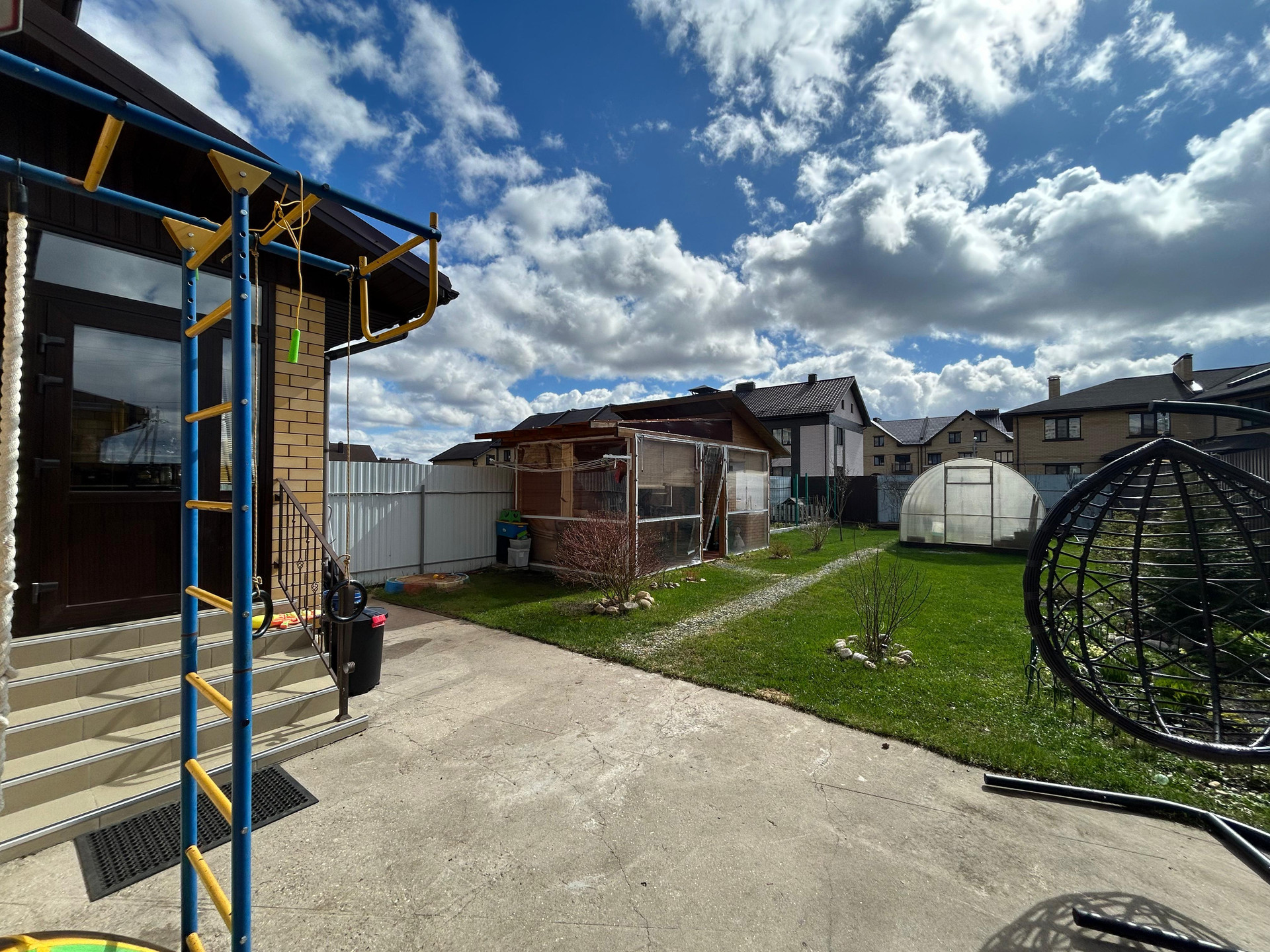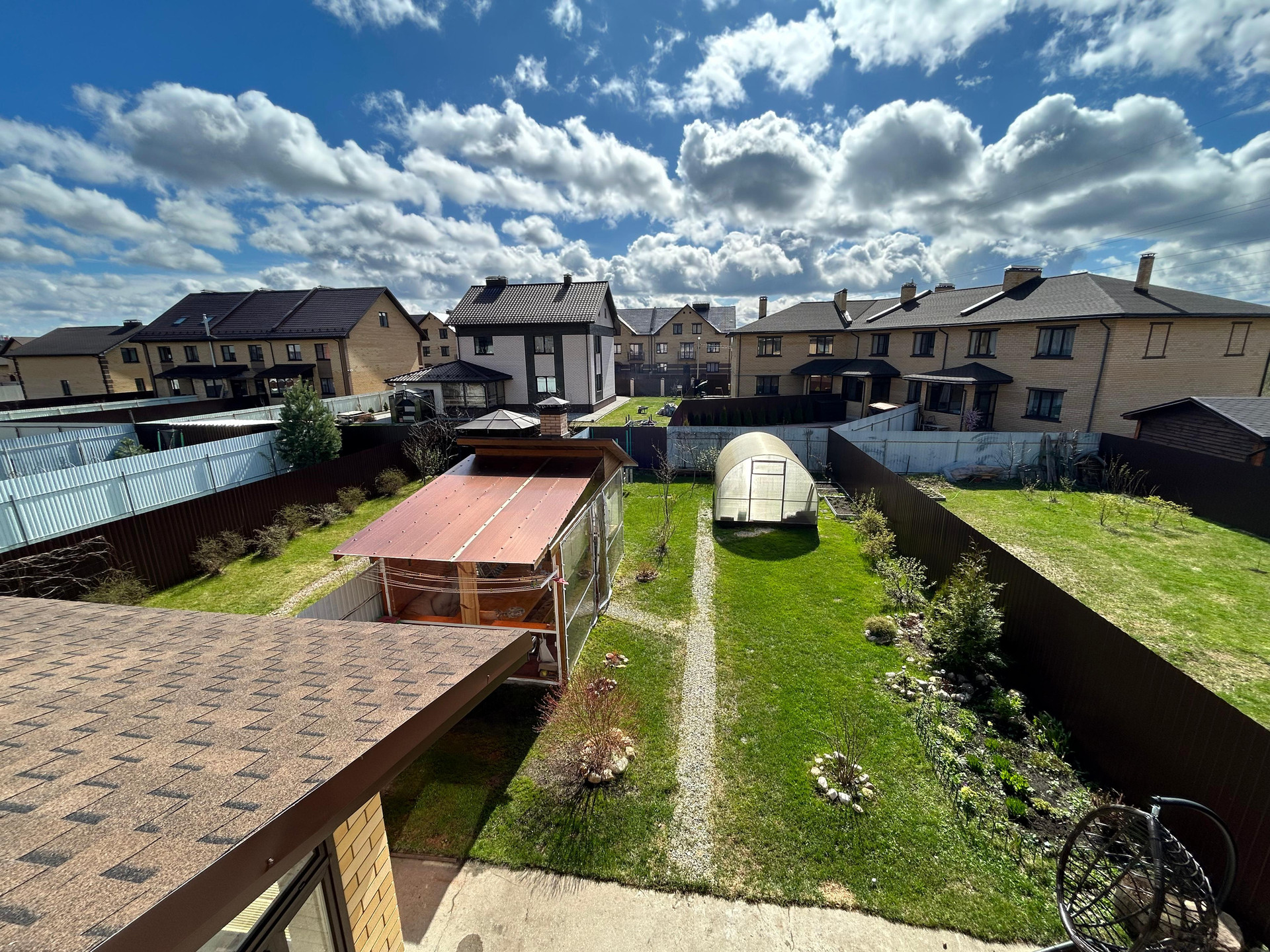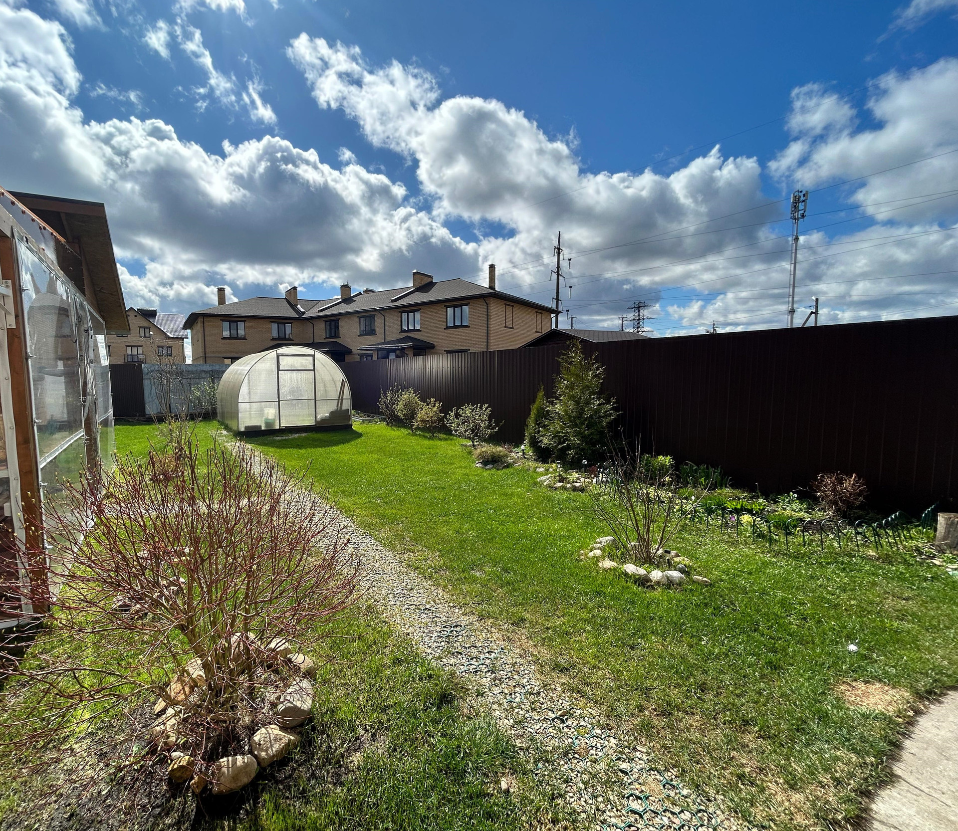 Площадь таунхауса: 134,5 кв.м.. Площадь участка 4,11 соток, огорожен по периметру. Высокий, отсыпанный. На участке плодовые кустарники. Парник. Навес для 2 автомобилей.