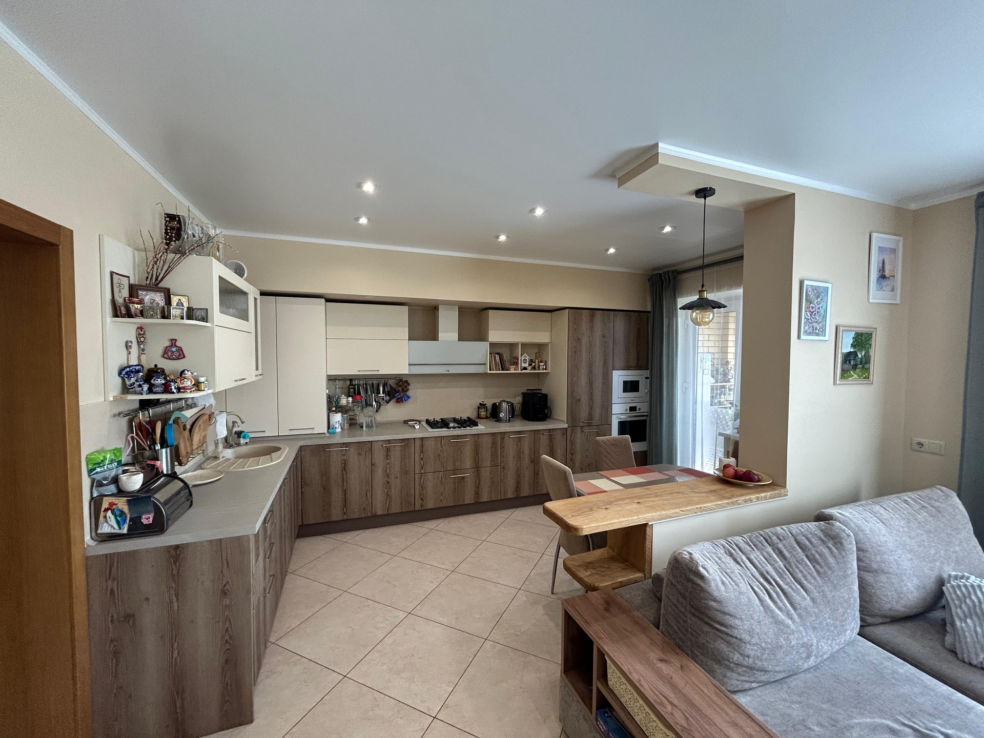 При продаже остается кухонный гарнитур со встроенной варочной газовой панелью, вытяжкой, посудомоечной машиной, духовым шкафом и холодильником. Вся остальная мебель и техника по договоренности.