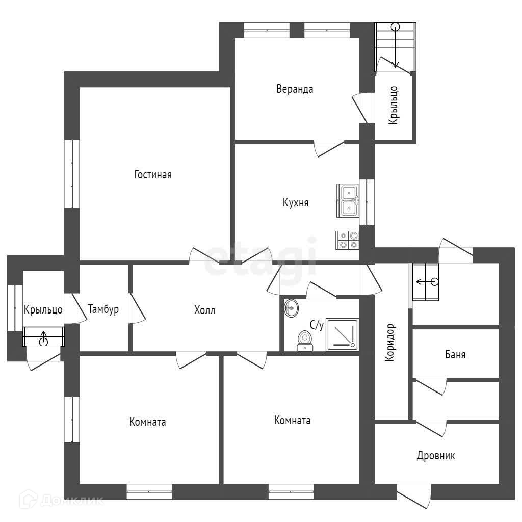 Дом для большой дружной семьи, три большие комнаты светлые и теплые, места достаточно для детей и взрослых. Огромная прихожая в которой можно танцевать гостям, приличная кухня с хорошей печкой. Газ к сожалению привозной, зато в доме можно отапливаться электричеством и если сильно холодно подтапливать печку, благо есть дрова в просторном сарае. В дом заведена вода, теплый туалет со смывом, свой септик.