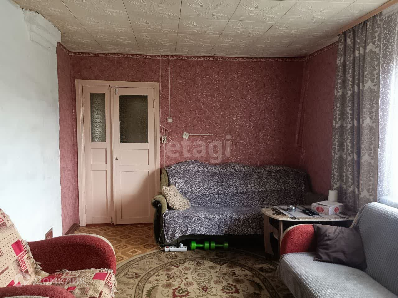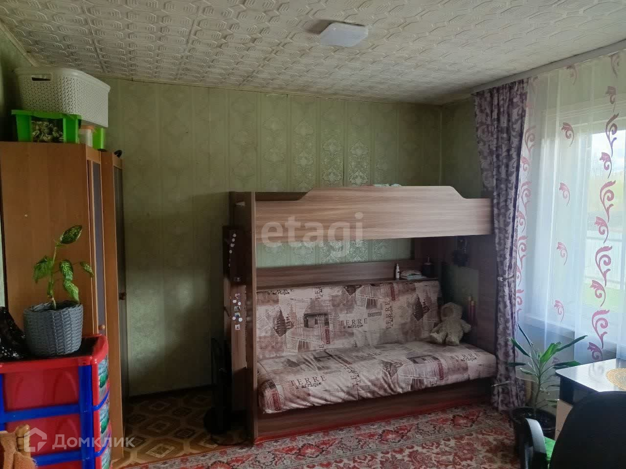 Справа прекрасная детская комната, высокие потолки, круглая печка на две комнаты.