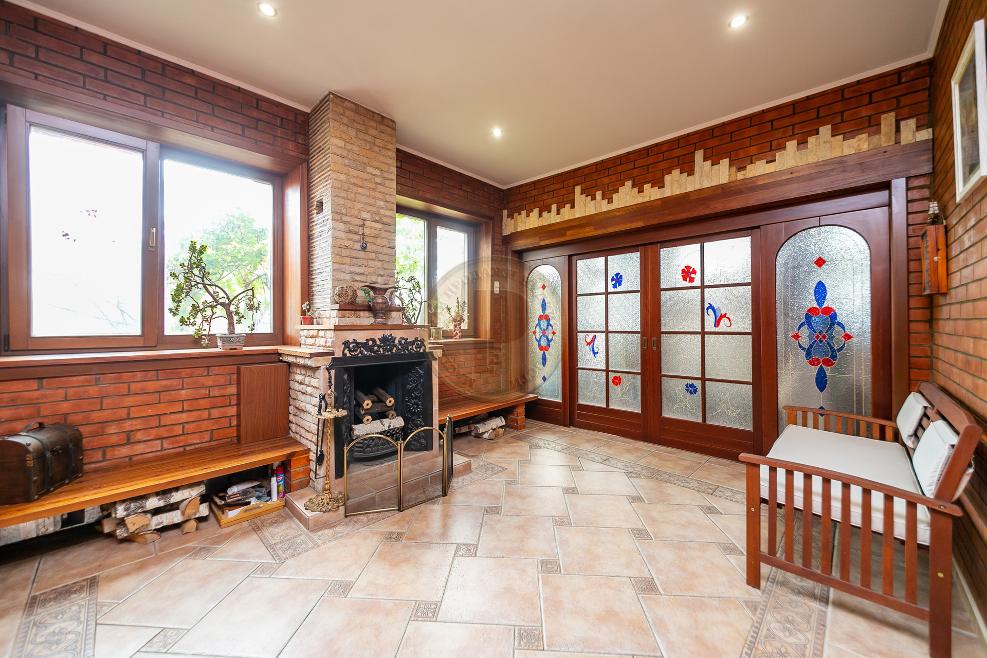 Сказать, что это шикарный дом - это не сказать ничего! Попадая сюда, влюбляешься сразу, архитектура дома потрясающая! Семь основных комнат, два каминных зала, баня с бассейном, большой спортзал, отдельное помещение для помощников, несколько кладовых для хранения продуктов, оборудованных по последнему слову техники. Все помещения в доме имеют отдельные выходы на улицу, что очень удобно и необычно.